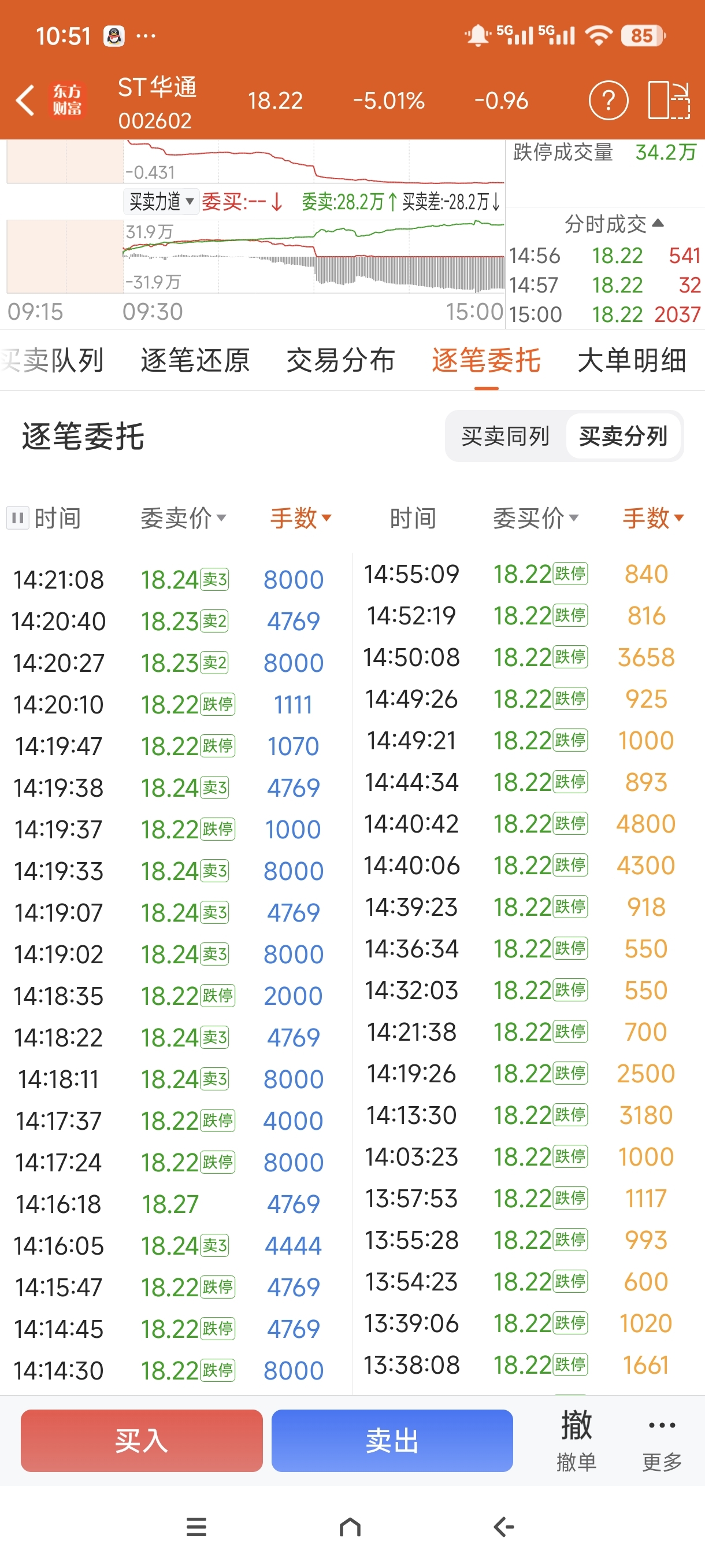 $ST华通(SZ002602)$ 逐笔还原太长了就不给你们看了,有几个大单一直在下单取消下单取消,这种卖法压根就不是想卖,而是用大单让散户恐慌,让散户跟着挂单,然后再取消黑散户推到前面去,最后的挂单里压根就没这几个人的事情,你可以自欺欺人说他们是拆小单卖了,那随你。4769和8000这种手法太经典了,下周一涨2%让剩下的散户以为跟之前一样高开低走,然后卖的差不多了之后下午直接再直接拉到3%让散户追回去。乐