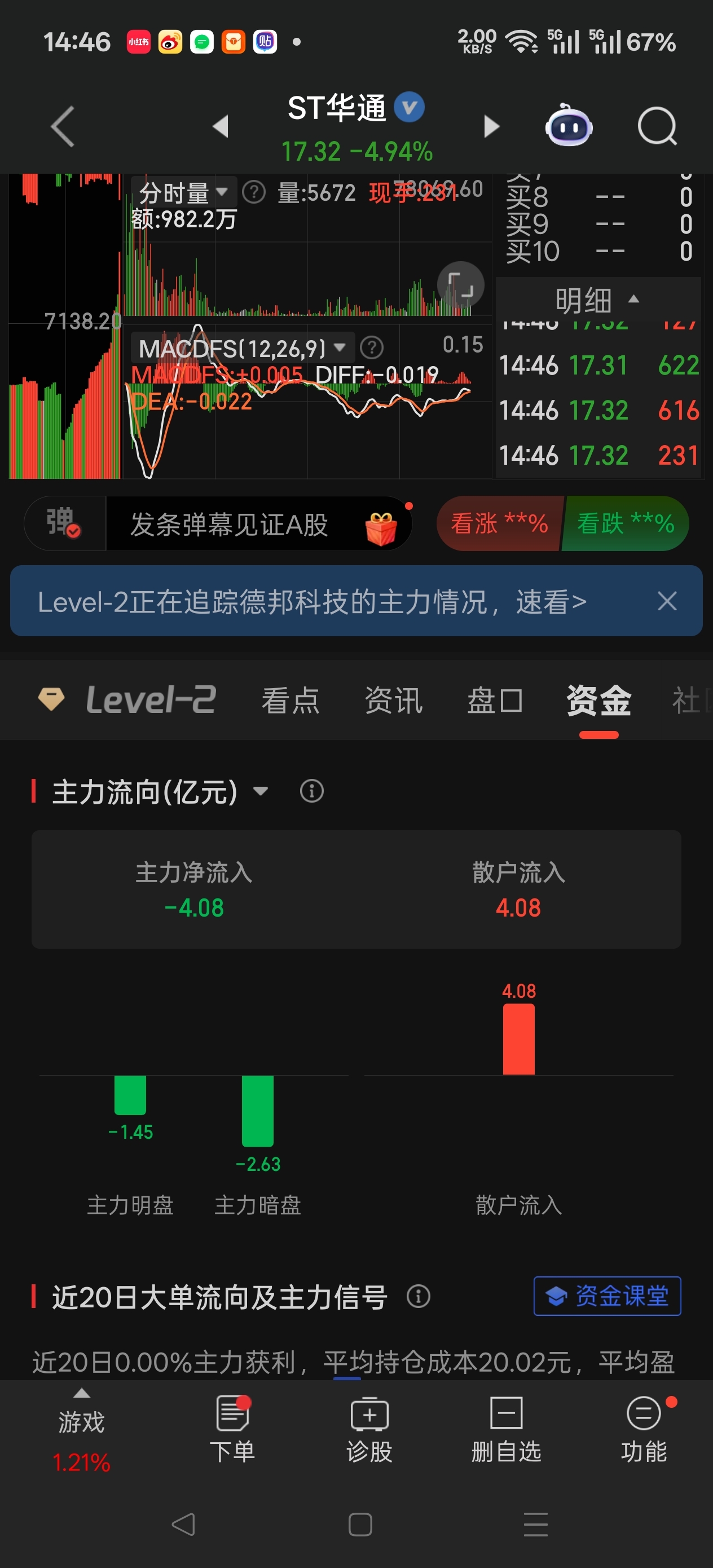 $ST华通(SZ002602)$ 暗盘流出更多