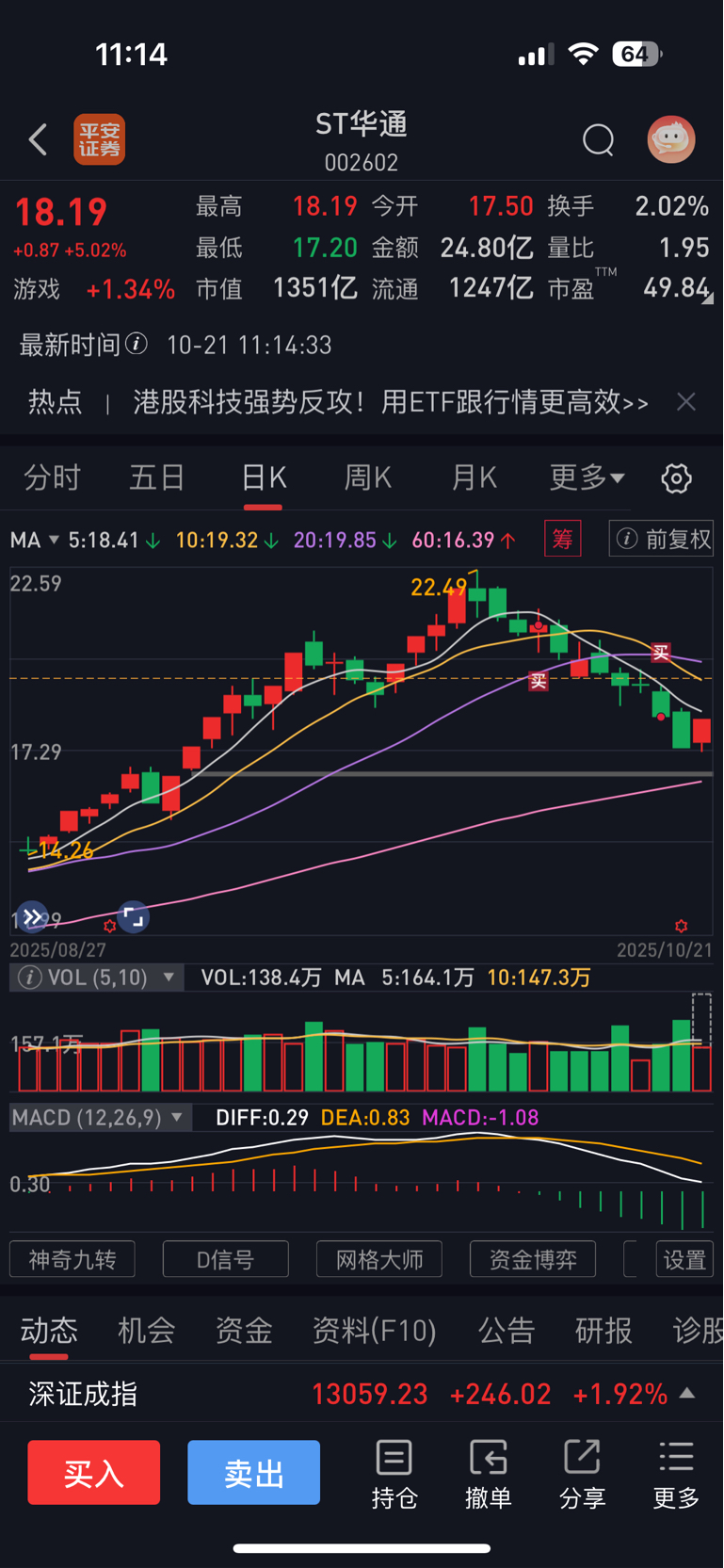 补早了一个板、不过没事,看好预期、摘帽前只要有机会就进、把仓位打满。