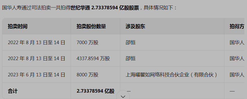 国华人寿通过几个理财产品共持有2.733亿股世纪华通股票