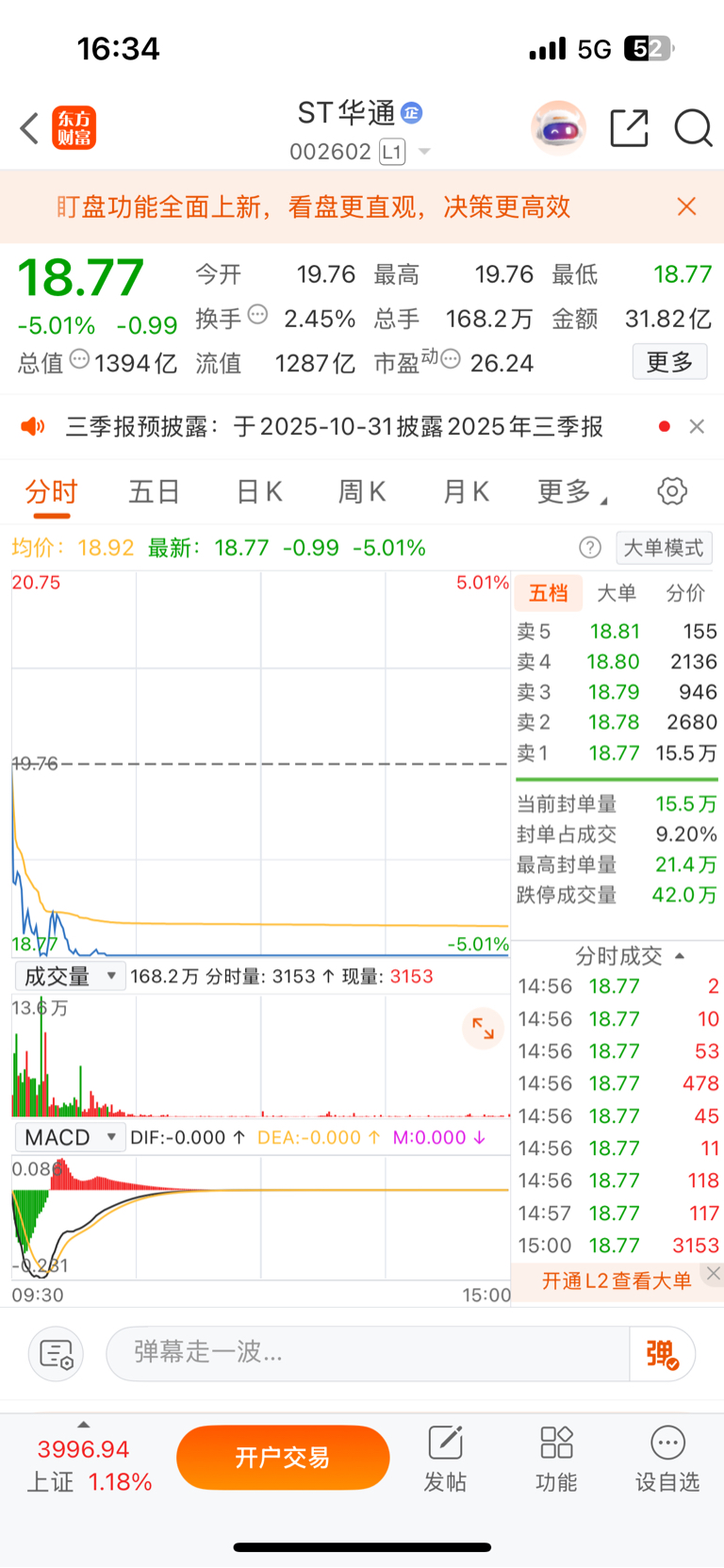 $ST华通(SZ002602)$ 今天这是不是传说中的一字断魂刀?