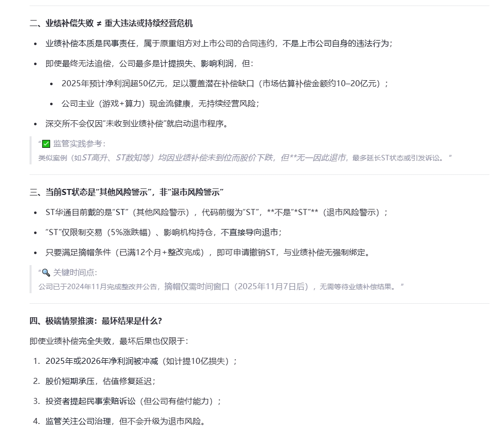 小作文来了:最终结论ST华通因业绩补偿未实施而退市的可能性为零。公司基本面强劲、