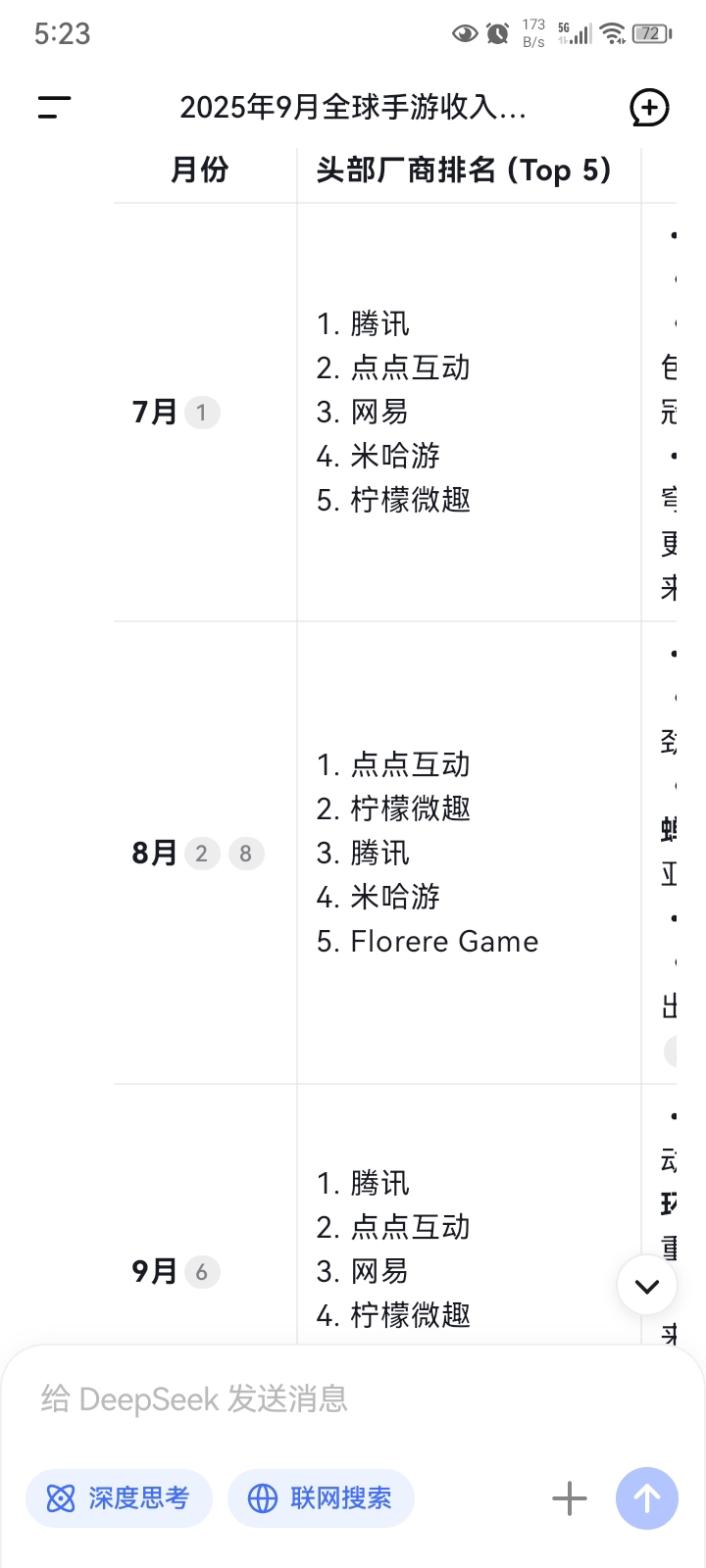 $ST华通(SZ002602)$ 中国手游7、8、9月收入排行榜,点点互动分别列2、1、2名
