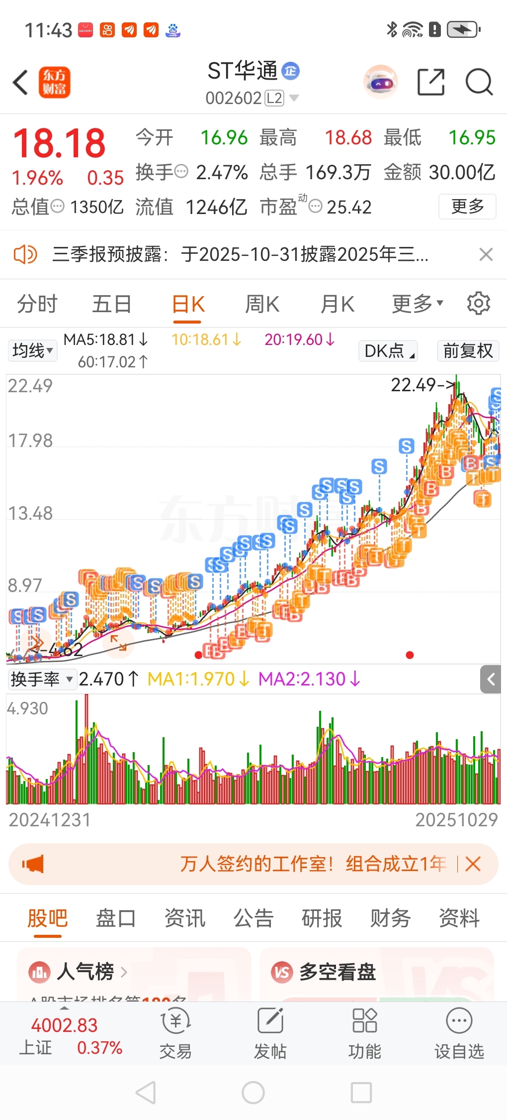 $ST华通(SZ002602)$ 你已经不再是我心中的那个神,不再那么稳稳的,感谢华通让我今年才能进账80个,利润全部来自你的贡献,如果后面有机会我还会回来打短的,今天清仓了你,开始做低市值股了。