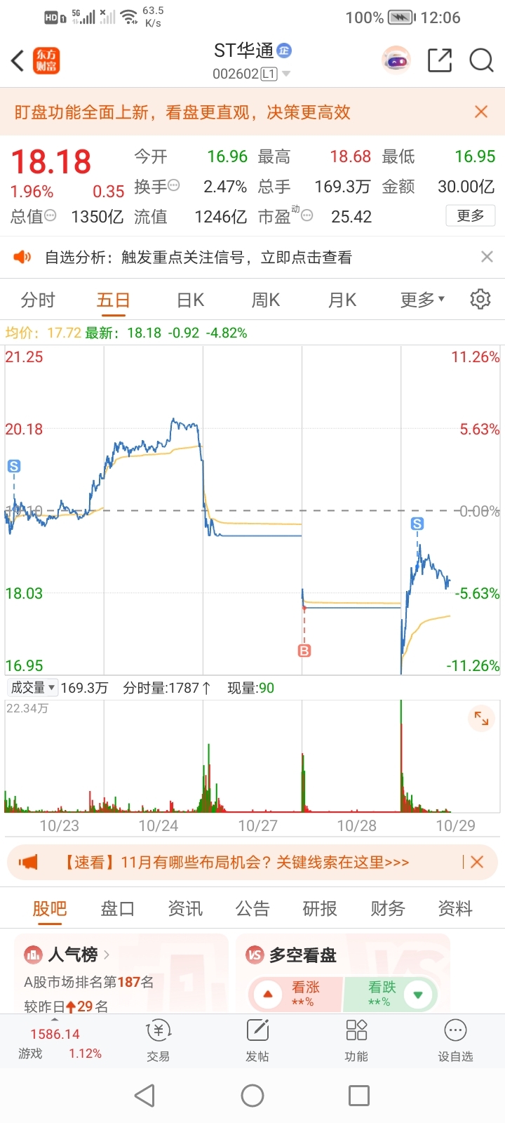 $ST华通(SZ002602)$ 23号吃两个涨停空仓,昨天跌停抄底,今天赚次高点空仓!不希望吃所有肉肉,赚自己认知范围内的!