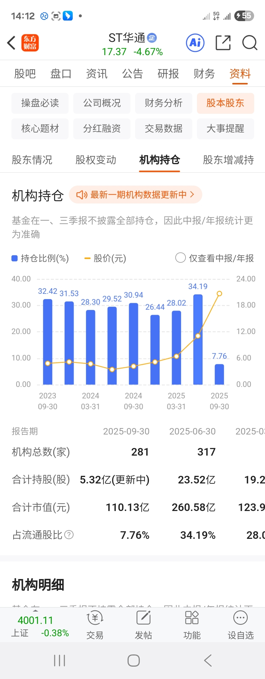 $ST华通(SZ002602)$ 机构持股估计要少一半,最近全甩给散户了