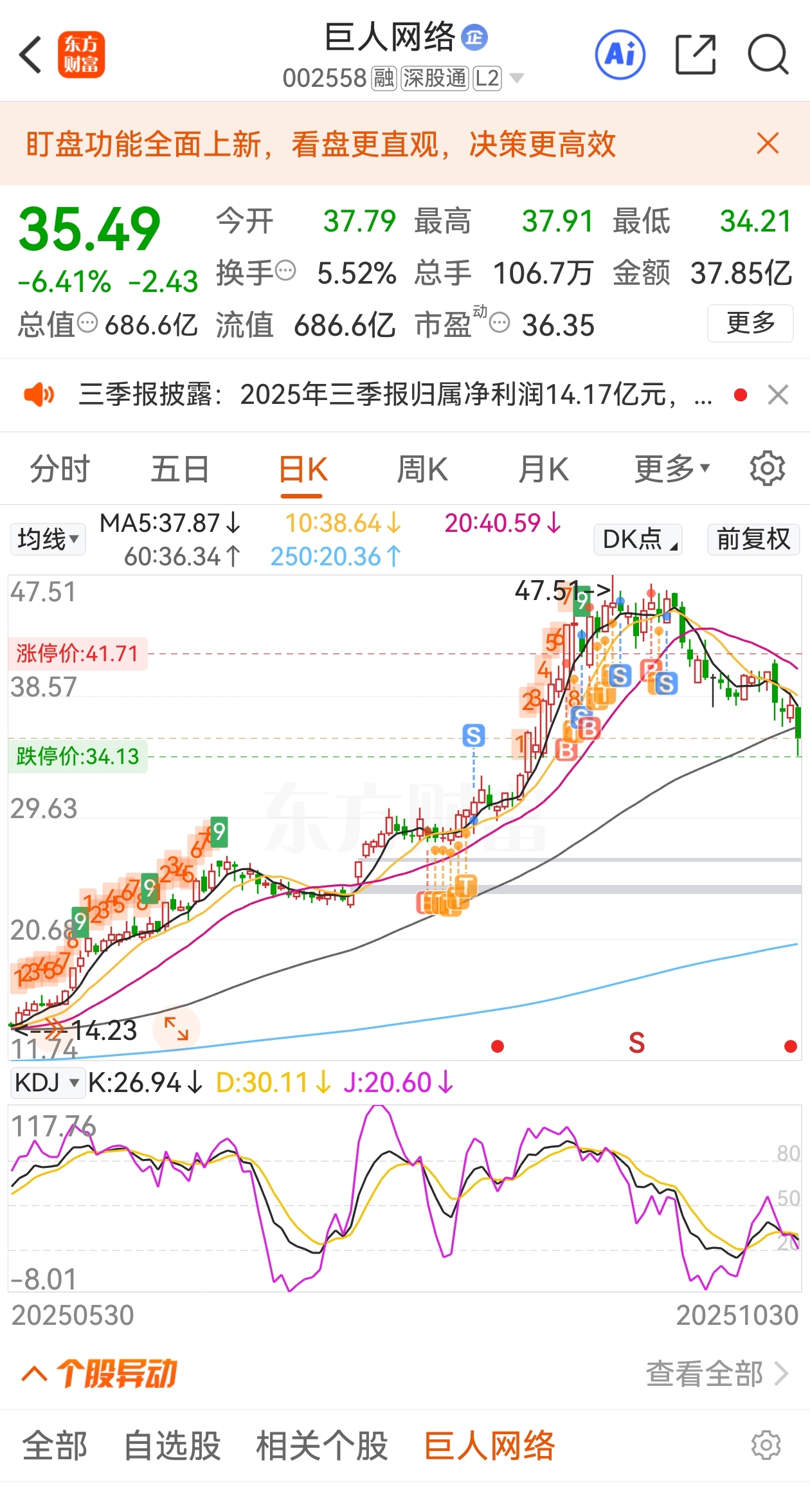 巨人公布业绩后,今天跌6,明天应该巨人先行!