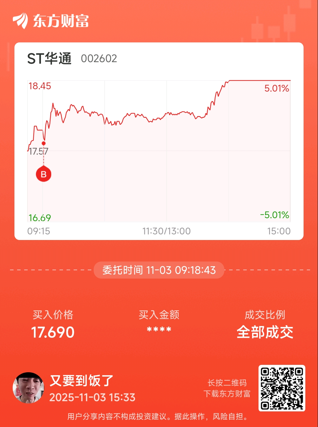 温馨提示: 1.根据《证券法》规定,禁止编造、传播虚假信息或者误导性信息,扰乱证券市场;2.用户在本社区发表的所有资料、言论等仅代表个人观点,与本网站立场无关,不对您构成任何投资建议。用户应基于自己的独立判断,自行决定证券投资并承担相应风险。《东方财富社区管理规定》