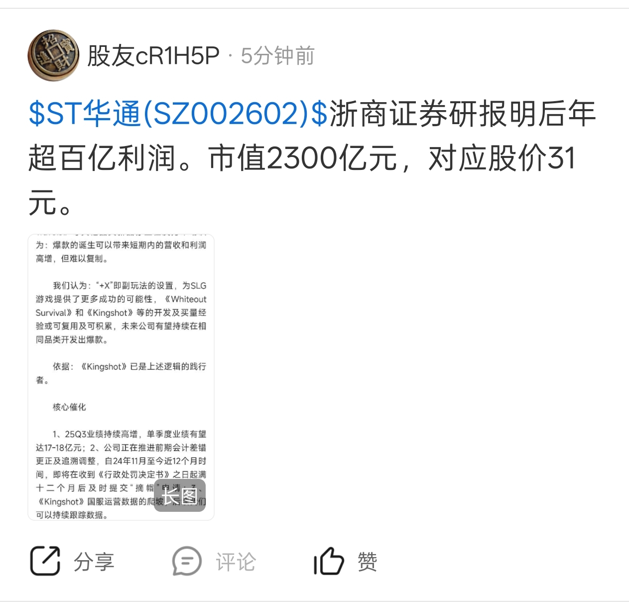 $ST华通(SZ002602)$ 韭菜我知道你很急,但你先别急,摘帽后有你好果子吃,天天在这叫