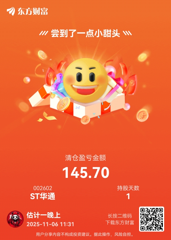 $ST华通(SZ002602)$ 昨日尾盘娱乐了1万块…开盘跑了,还不是好时机啊