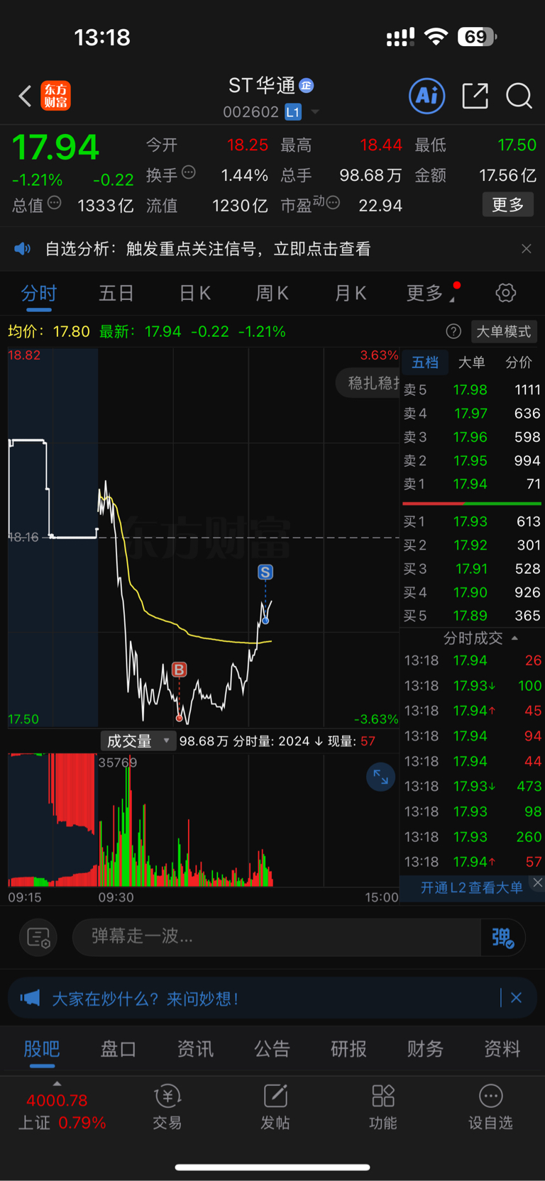 $ST华通(SZ002602)$ 做个小T这个票长期持有的