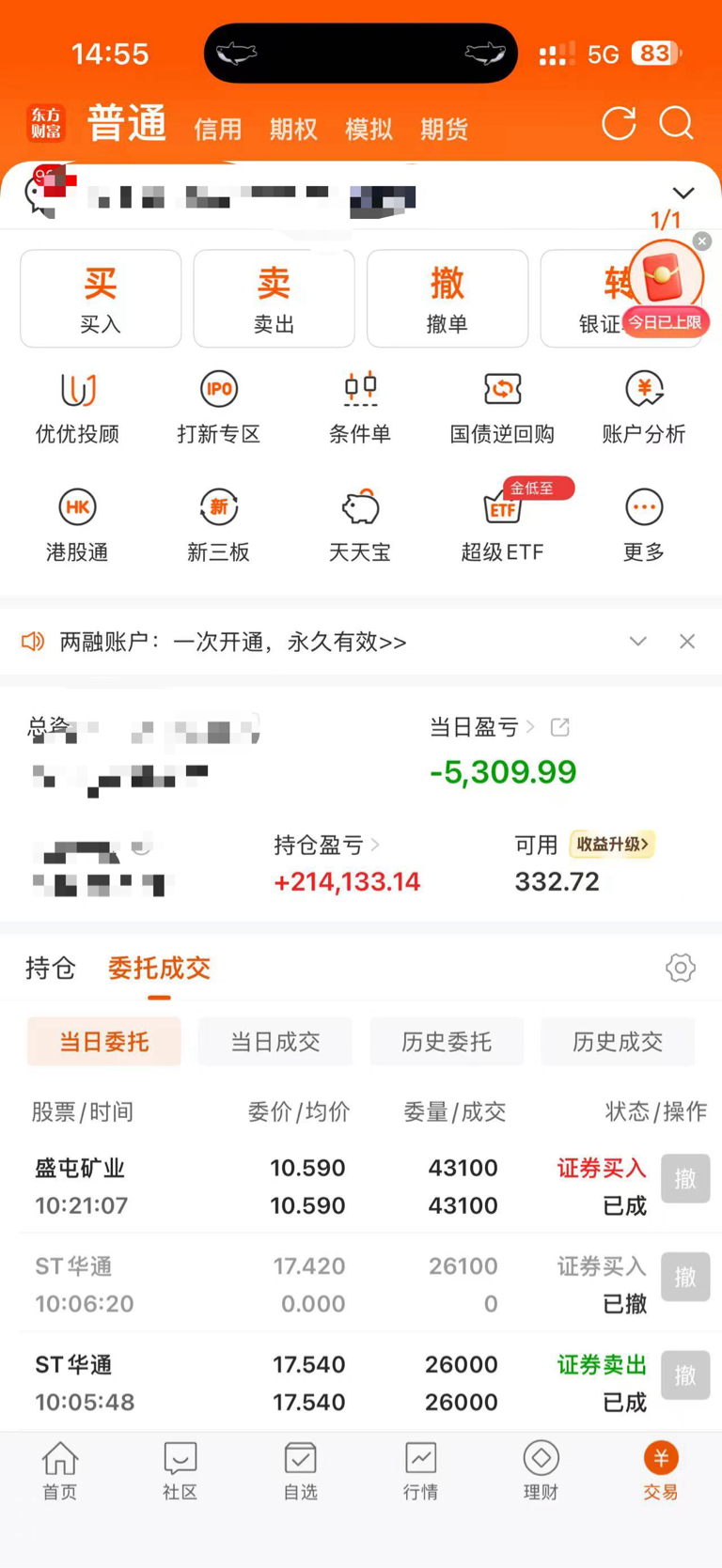 $ST华通(SZ002602)$ 这个账户11左右进来的,今天清了,单吊太痛苦了,出一点点出去打野了,希望华通把我这几万股甩下车,明天开始涨涨涨
