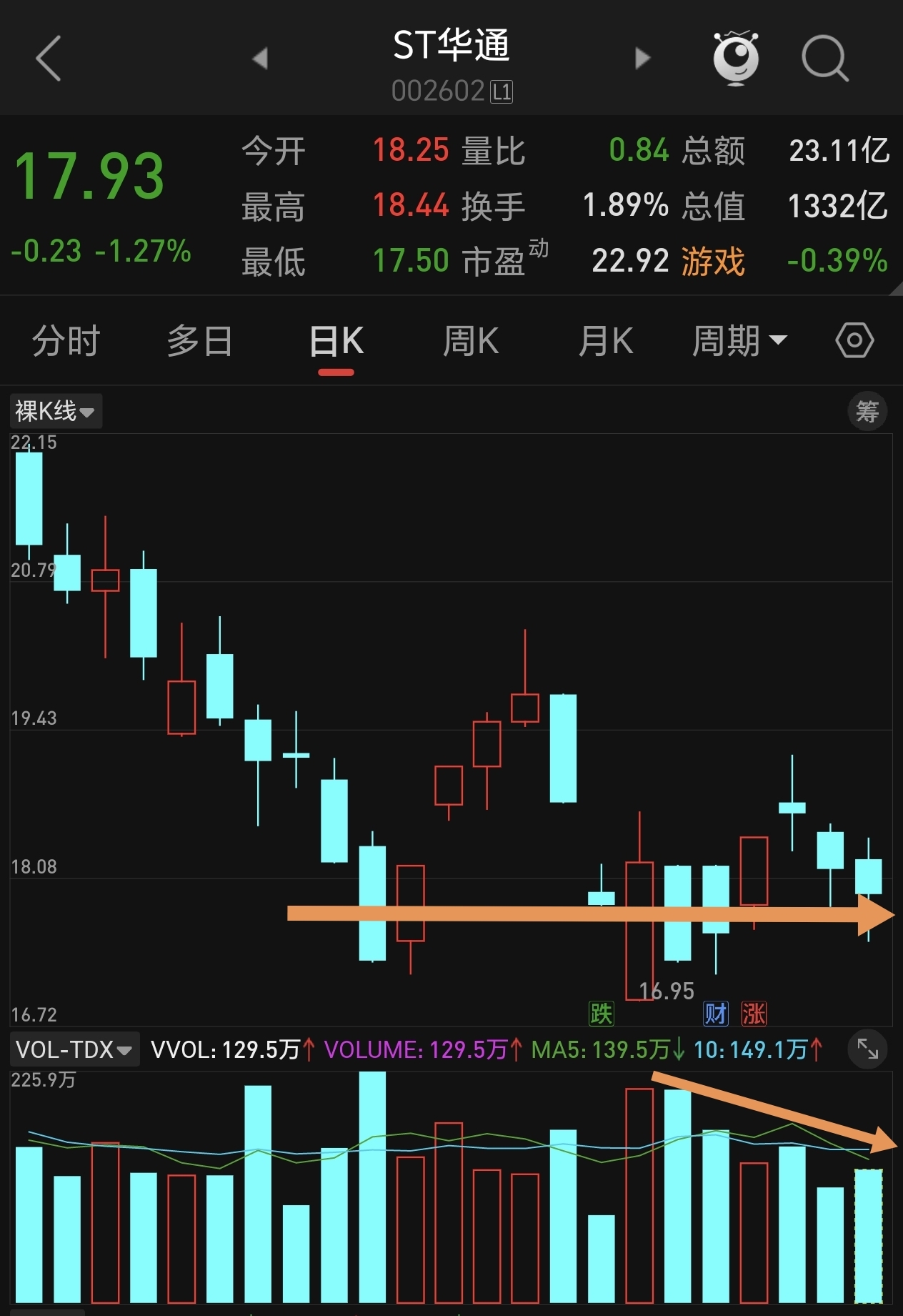 华通技术分析现在其实是走横了,上去一点被摁下来,下去了又有人接,但总体是个缩量的