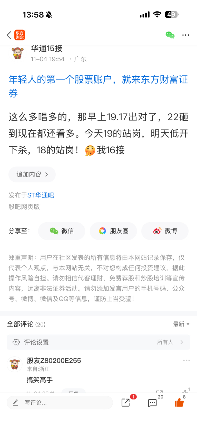 温馨提示: 1.根据《证券法》规定,禁止编造、传播虚假信息或者误导性信息,扰乱证券市场;2.用户在本社区发表的所有资料、言论等仅代表个人观点,与本网站立场无关,不对您构成任何投资建议。用户应基于自己的独立判断,自行决定证券投资并承担相应风险。《东方财富社区管理规定》