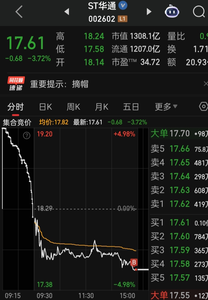 $ST华通(SZ002602)$ 摘帽,叠加明天大盘大涨,周三一字涨停,不是没有可能
