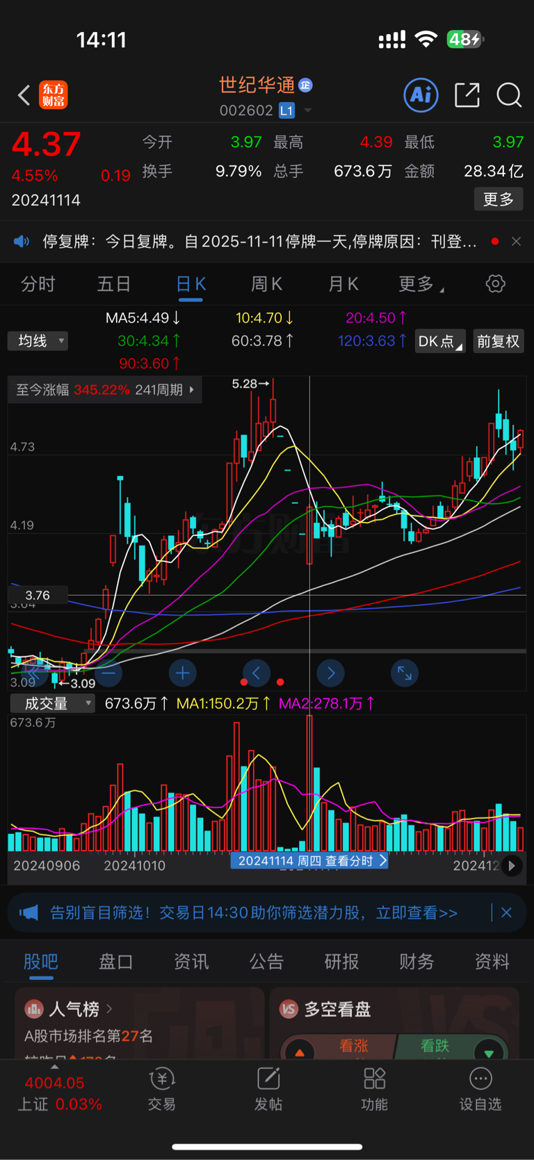$世纪华通(SZ002602)$ 这天才是历史天量