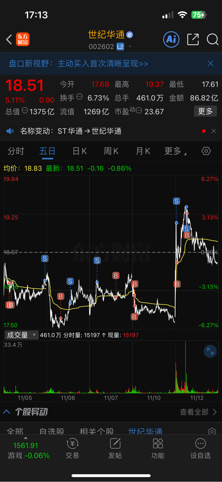 $世纪华通(SZ002602)$ 大爱华子,接着奏乐接着舞~