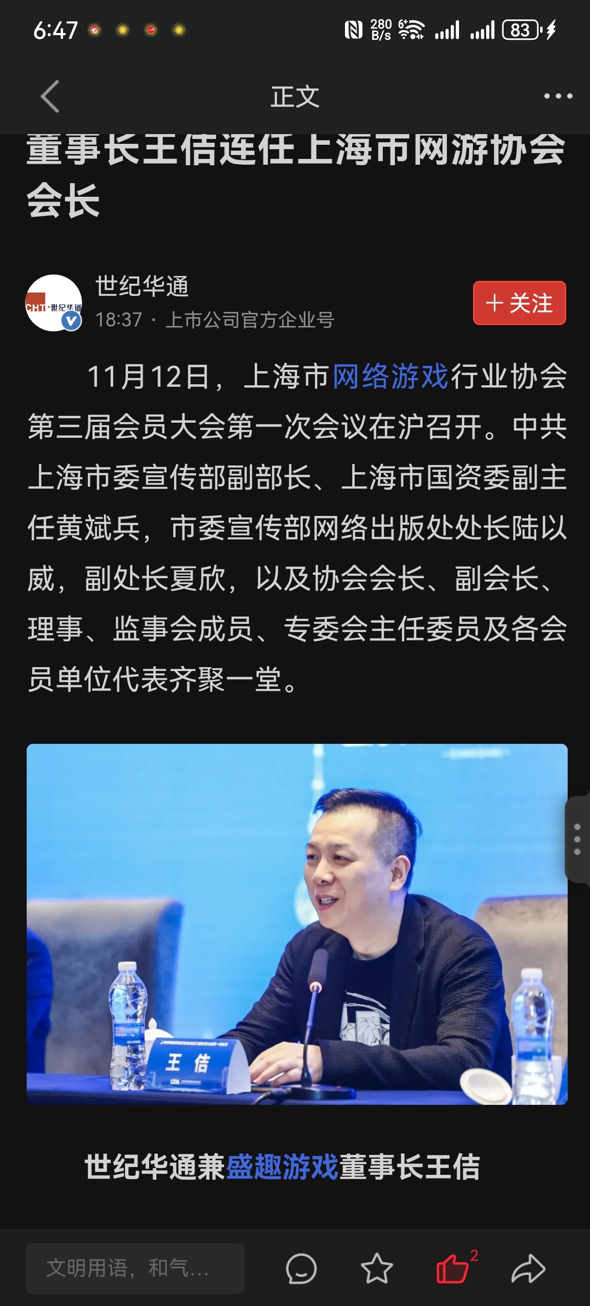 $世纪华通(SZ002602)$