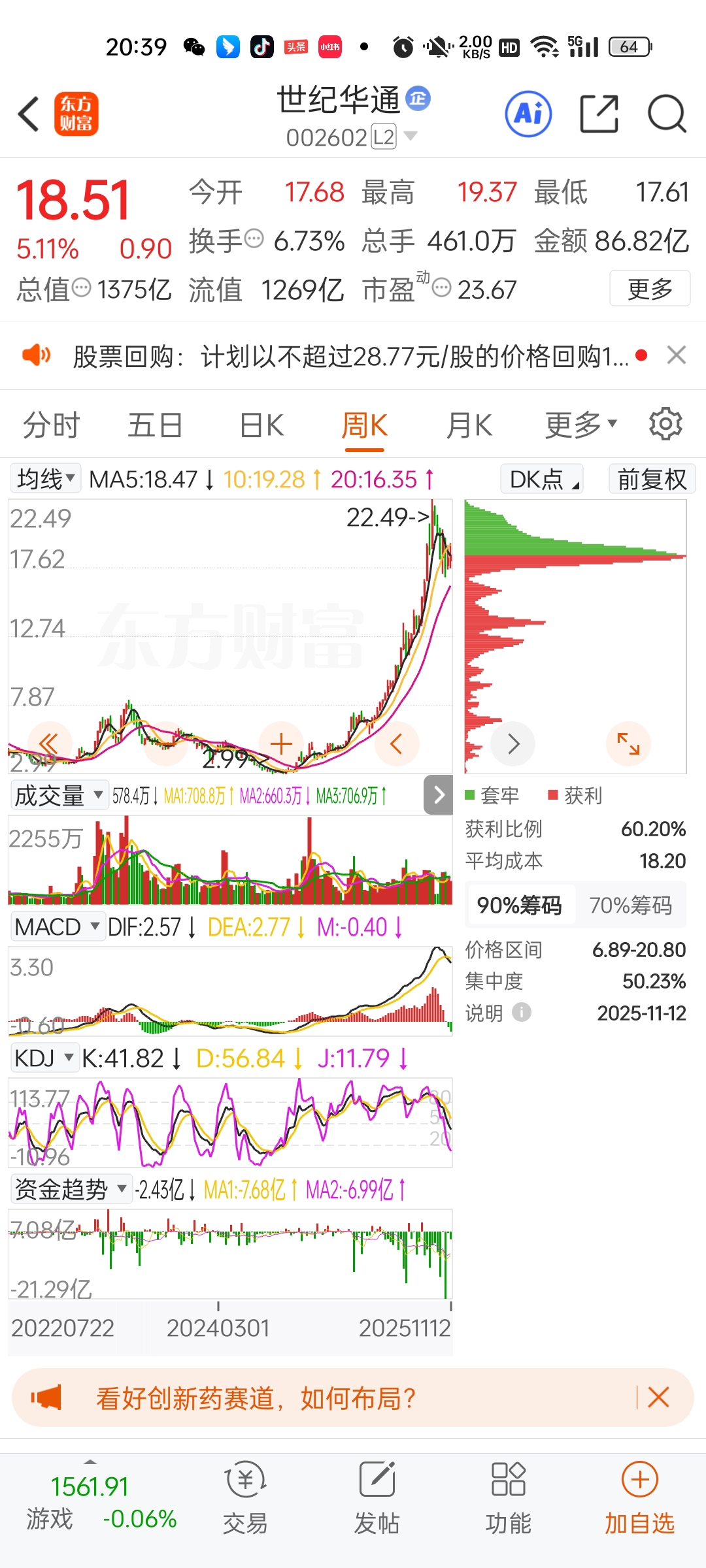 $世纪华通(SZ002602)$ 历史大鼎,历史天量,今日追进去的这辈子别想解套