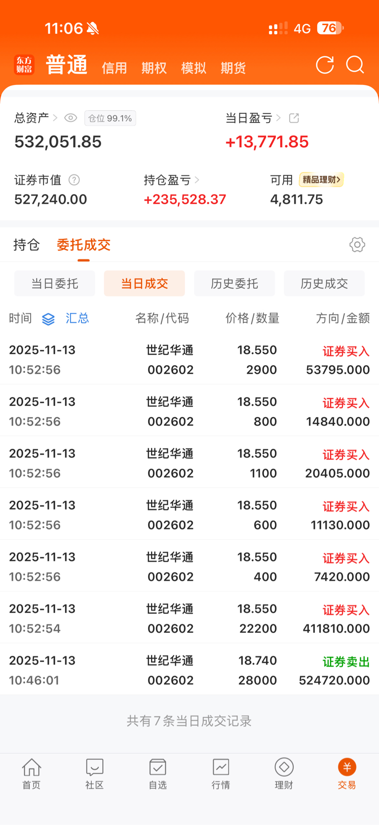 $世纪华通(SZ002602)$ 继续小账户猛猛的t。今天任务完成