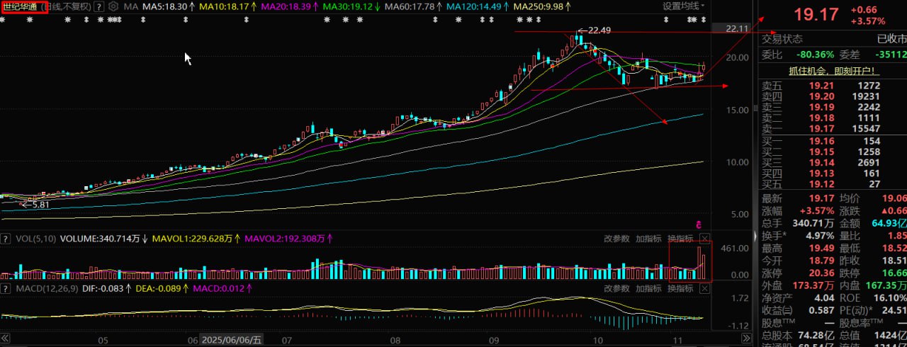 今天复盘$世纪华通(SZ002602)$ $神开股份(SZ002278)$ 【关注评论168支持一波虎哥】世纪华通:从技术形态看华通今天成功站稳20日MA均线,这是一个关键的上涨信号,并且基本面迎来利好,11月12日开市起复牌并撤销了警示,成功摘掉了ST帽子,没有了退市风险的影响,华通将会逐渐吸引投资的目光,加上它本身的营收优越,虎哥决定把短线策略改为中长期投资策略,把握更丰富的利润。神开股份:今天这只股票并没有达到虎哥的预期,所以明天冲高后虎哥会把神开了结了。以上仅为个人观点,投资需谨慎,入市有风险