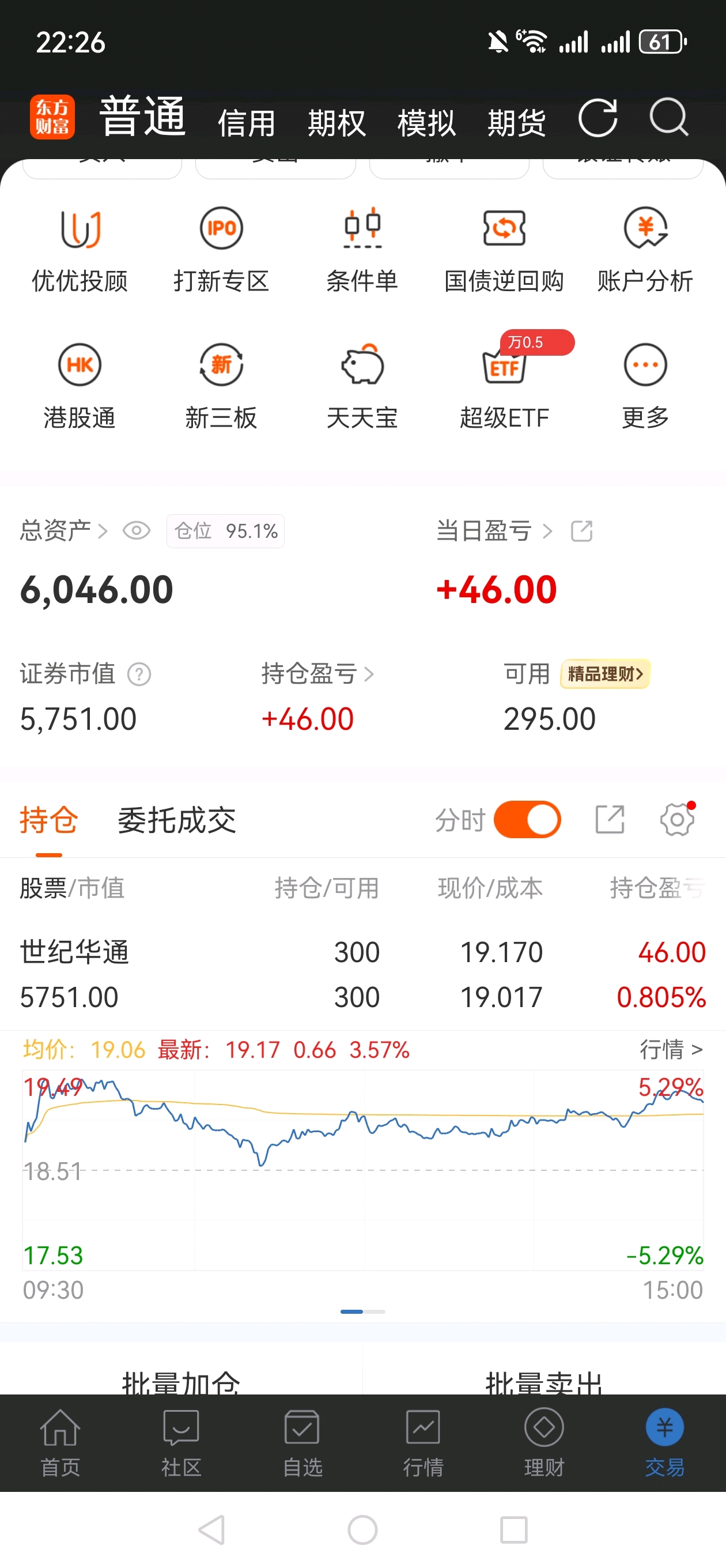 $世纪华通(SZ002602)$ 第一天,盈利46块大洋