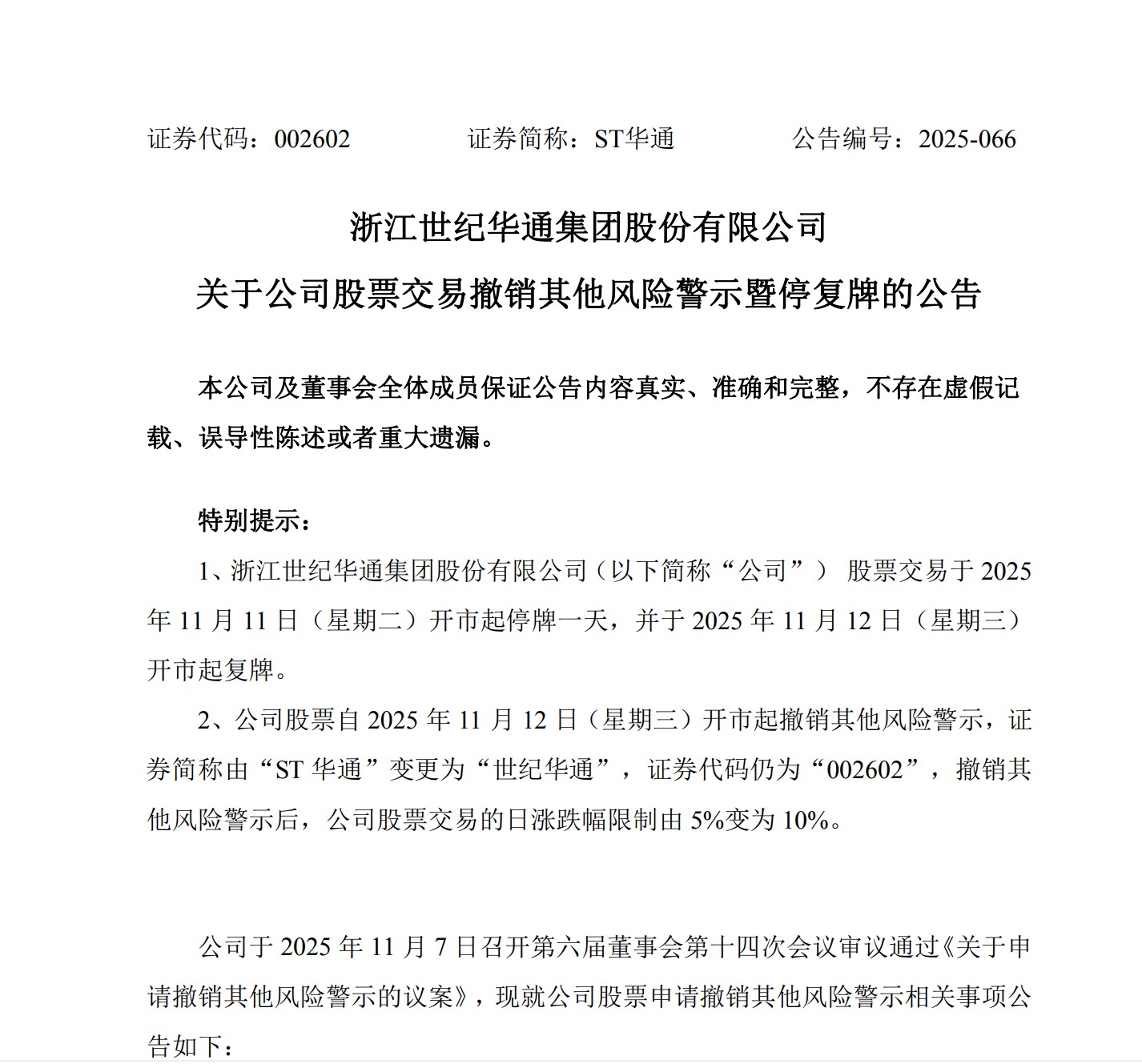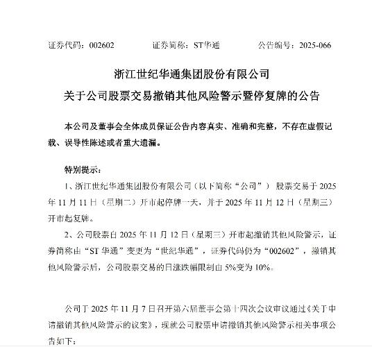 世纪华通于2025年11月12日成功“摘帽”,证券简称恢复为“世纪华通”,但其因