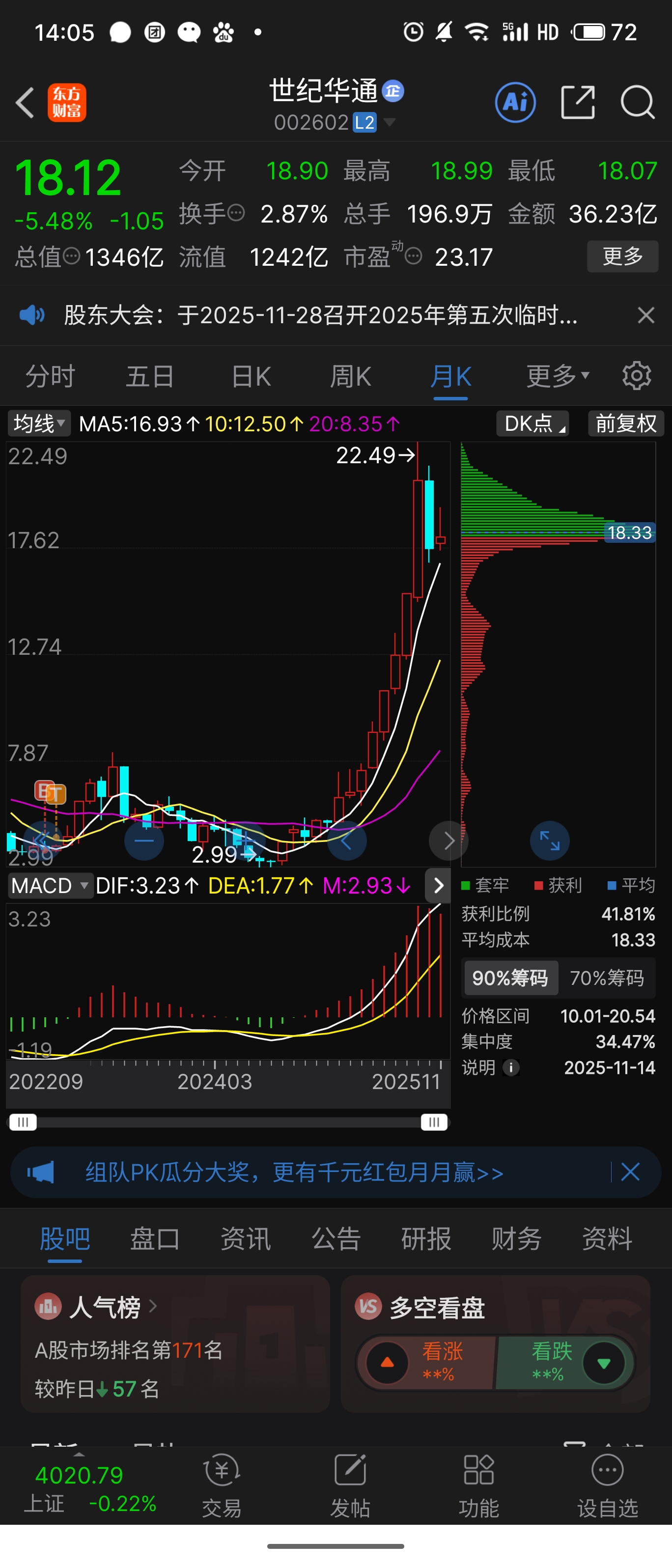 $世纪华通(SZ002602)$ 你有能耐跌回4块钱