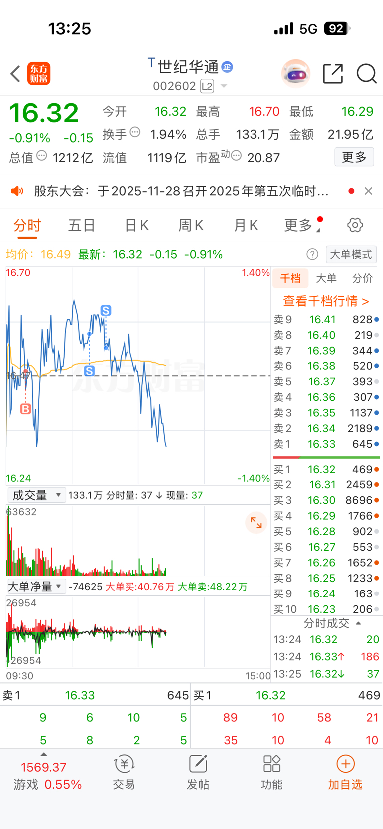 $世纪华通(SZ002602)$ 今天的T完成了,随便