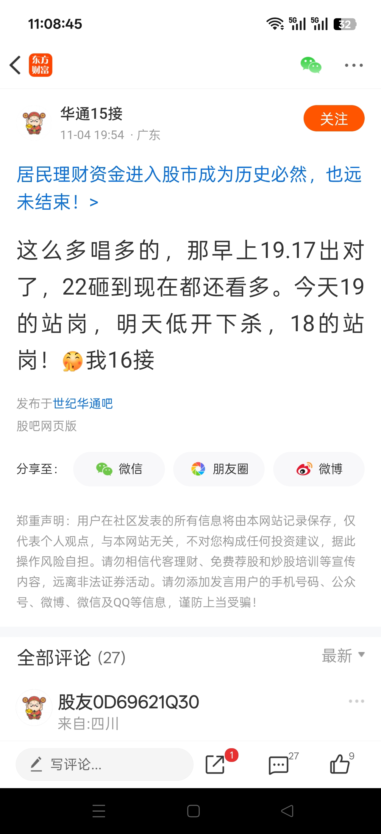 温馨提示: 1.根据《证券法》规定,禁止编造、传播虚假信息或者误导性信息,扰乱证券市场;2.用户在本社区发表的所有资料、言论等仅代表个人观点,与本网站立场无关,不对您构成任何投资建议。用户应基于自己的独立判断,自行决定证券投资并承担相应风险。《东方财富社区管理规定》