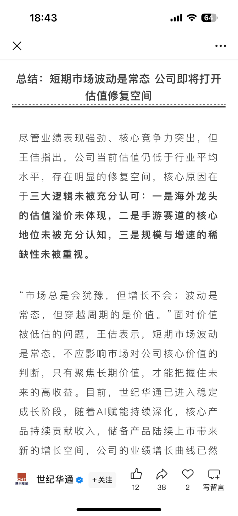 $世纪华通(SZ002602)$ 你倒是修复给我看看呐……下周一又要跌了……