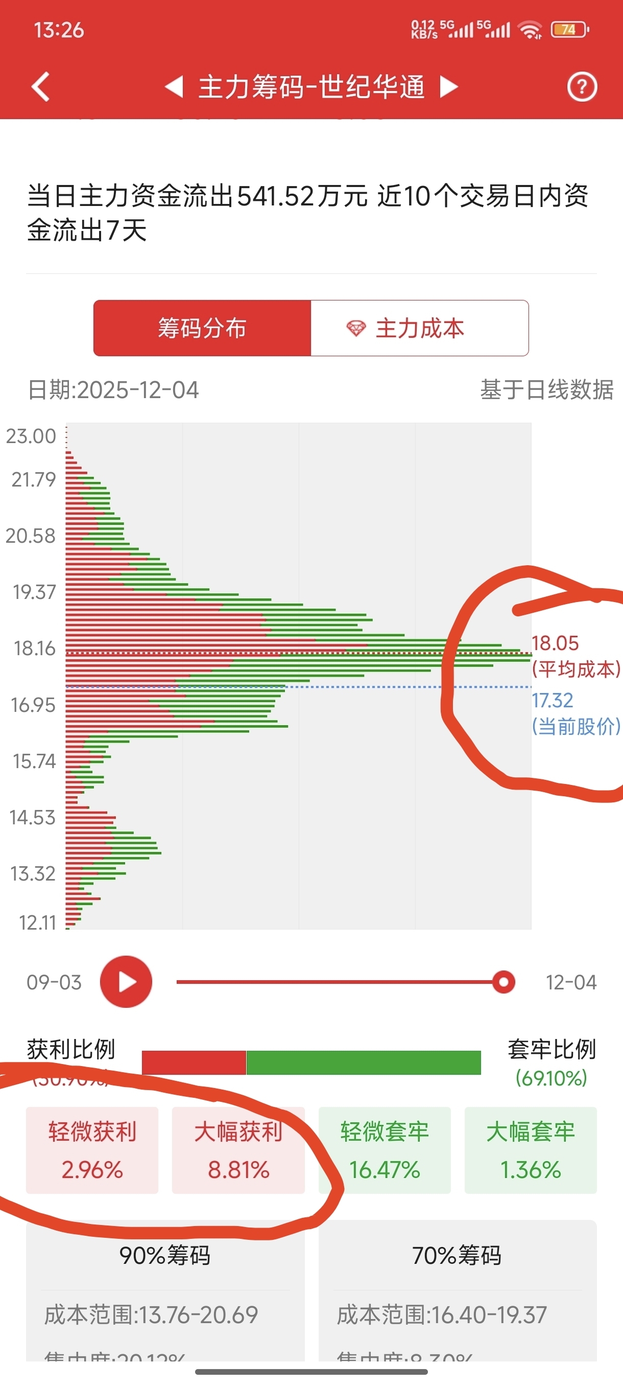 $世纪华通(SZ002602)$ 市场平均成本18.05元。获利筹码不多了,都是带血筹码?