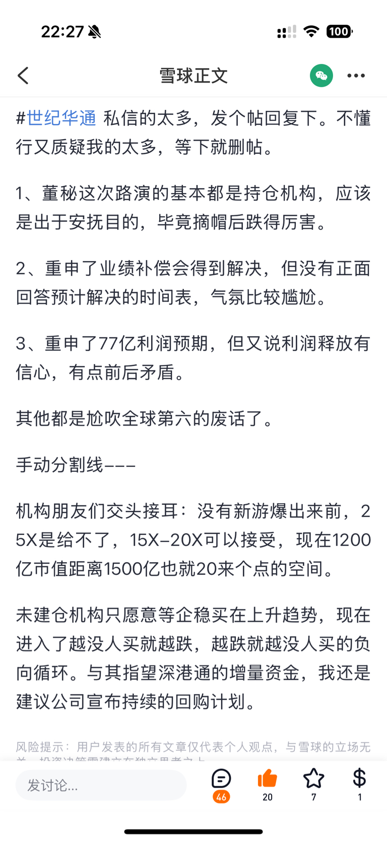 $世纪华通(SZ002602)$ 都卖了吧,看看真相是啥,你就知道为啥跌了 机构听了周末的路演大跌眼镜