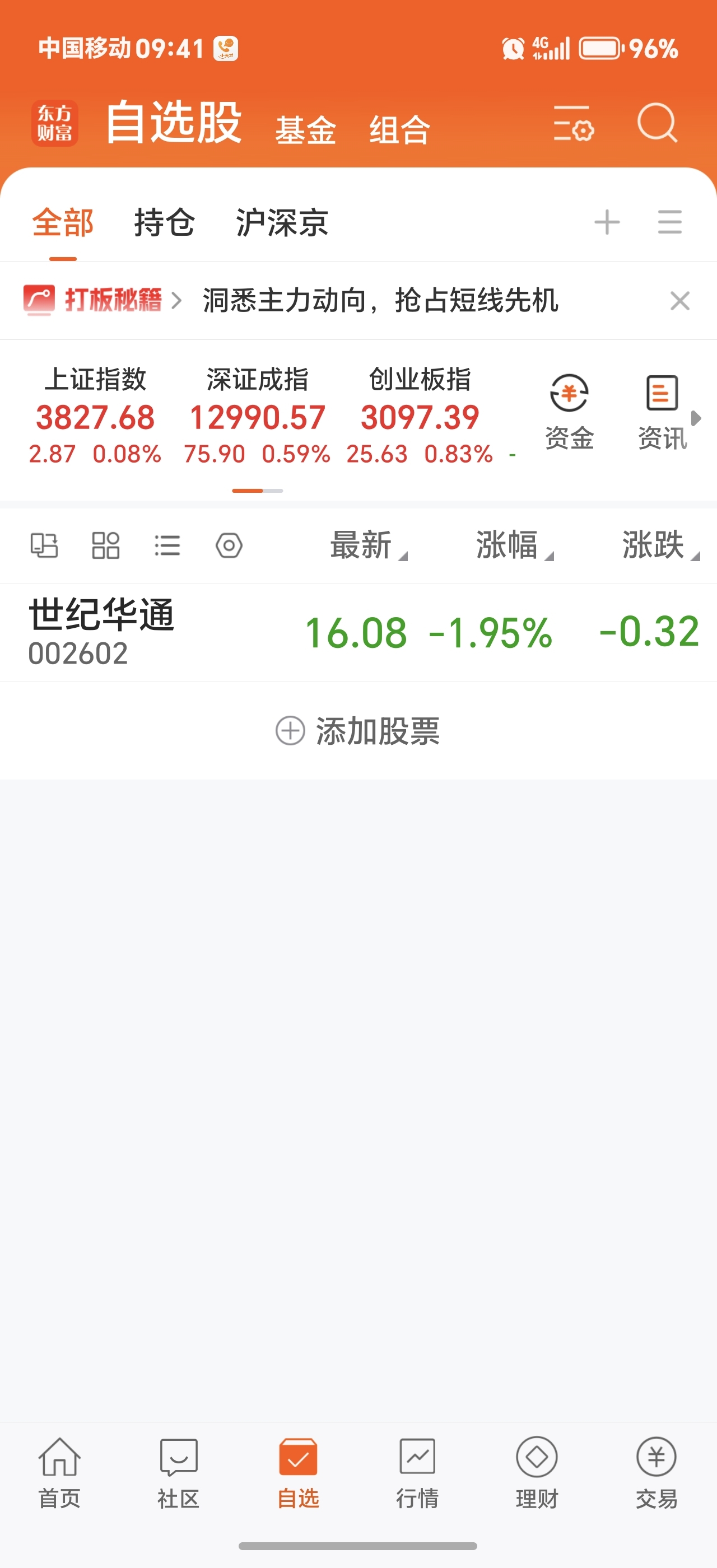 $世纪华通(SZ002602)$ 今天开始,只留通子一个,我就不信你还会st,我不信你会退市。以后有钱我就补,我就不信赚不到,玛德