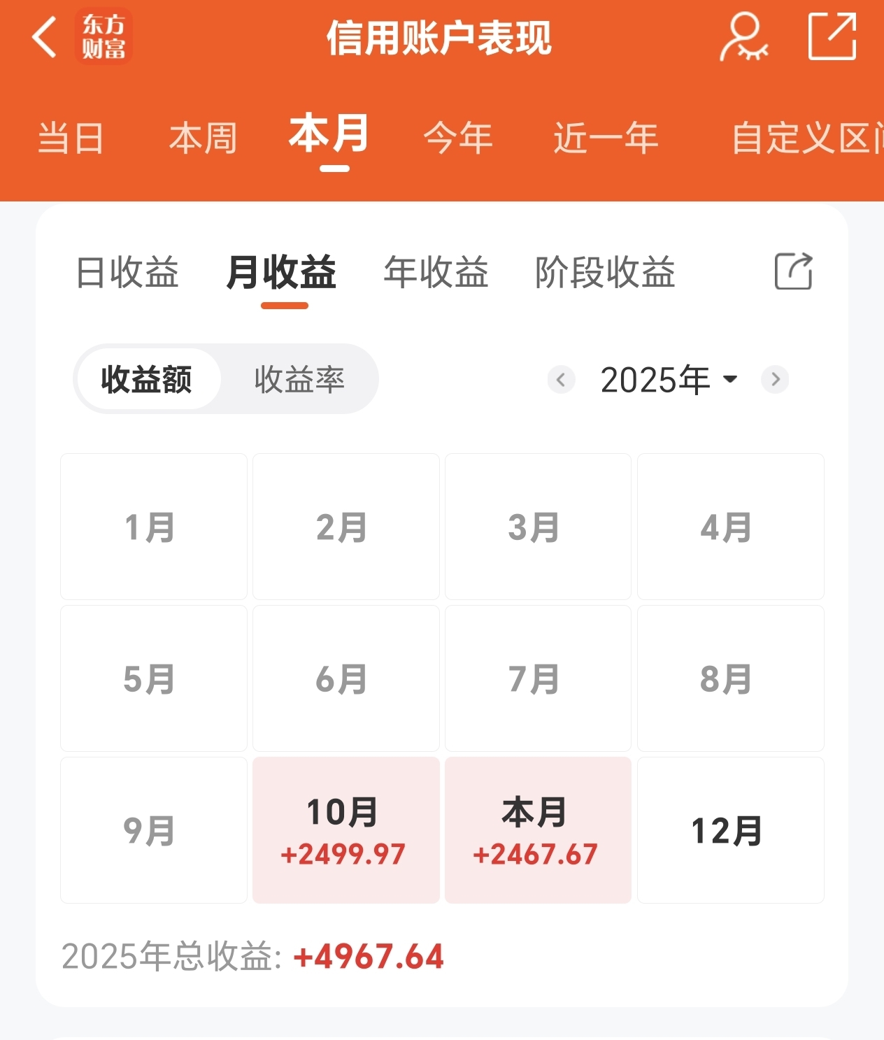 2025还有一个月,就提前从信用账户开启新篇章了。