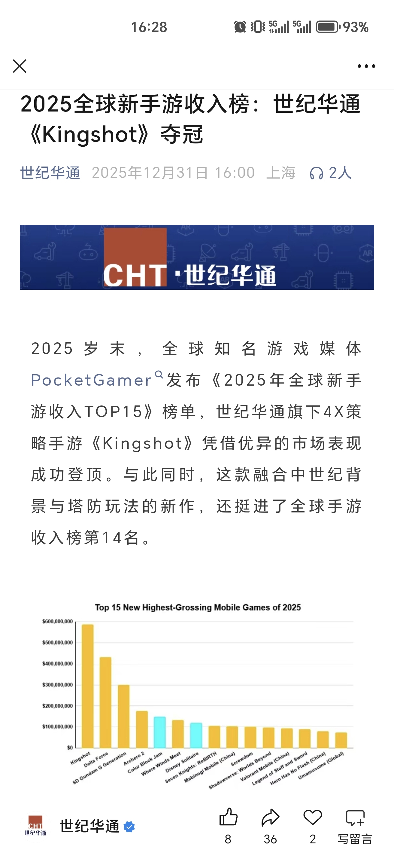 $世纪华通(SZ002602)$ Kingshot新手游收入夺冠