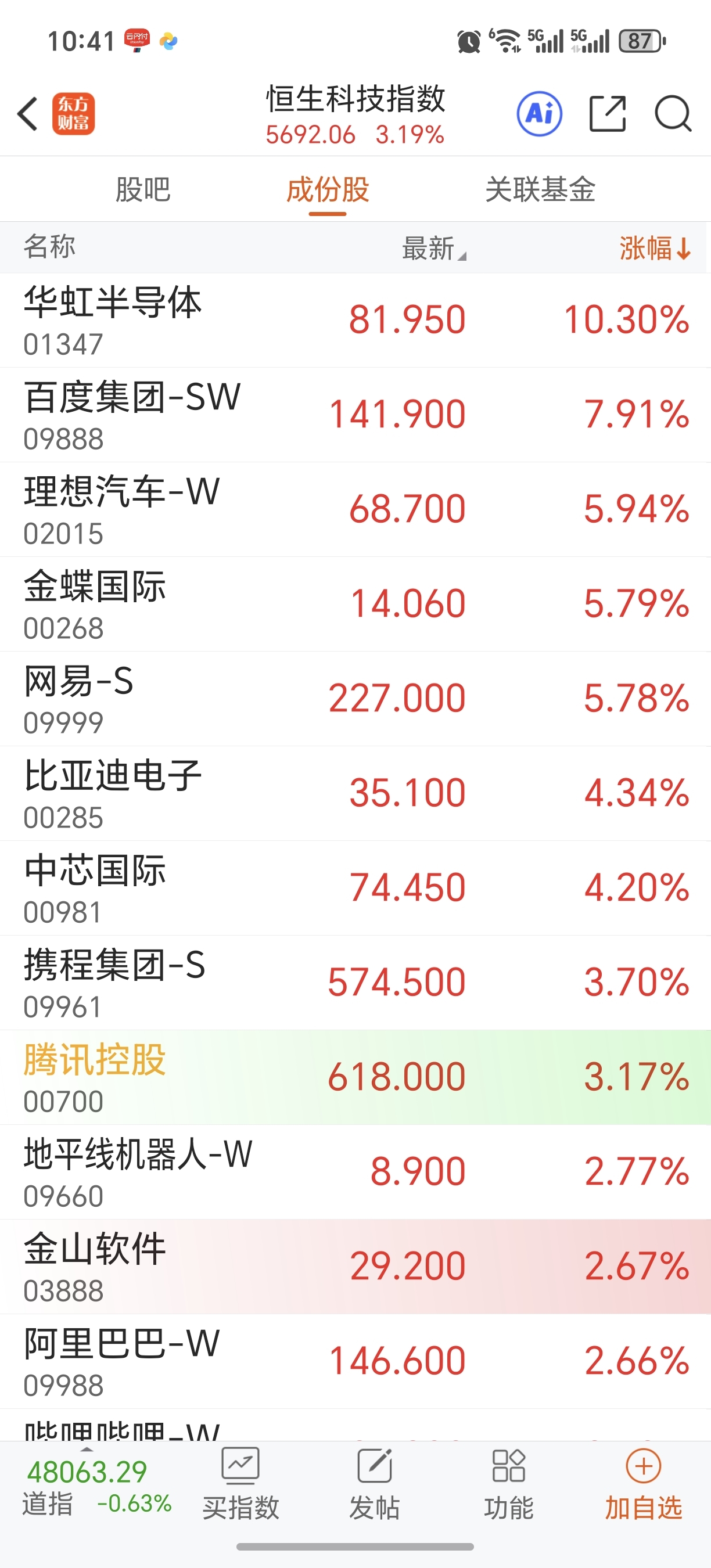 看看恒生科技涨的是什么股