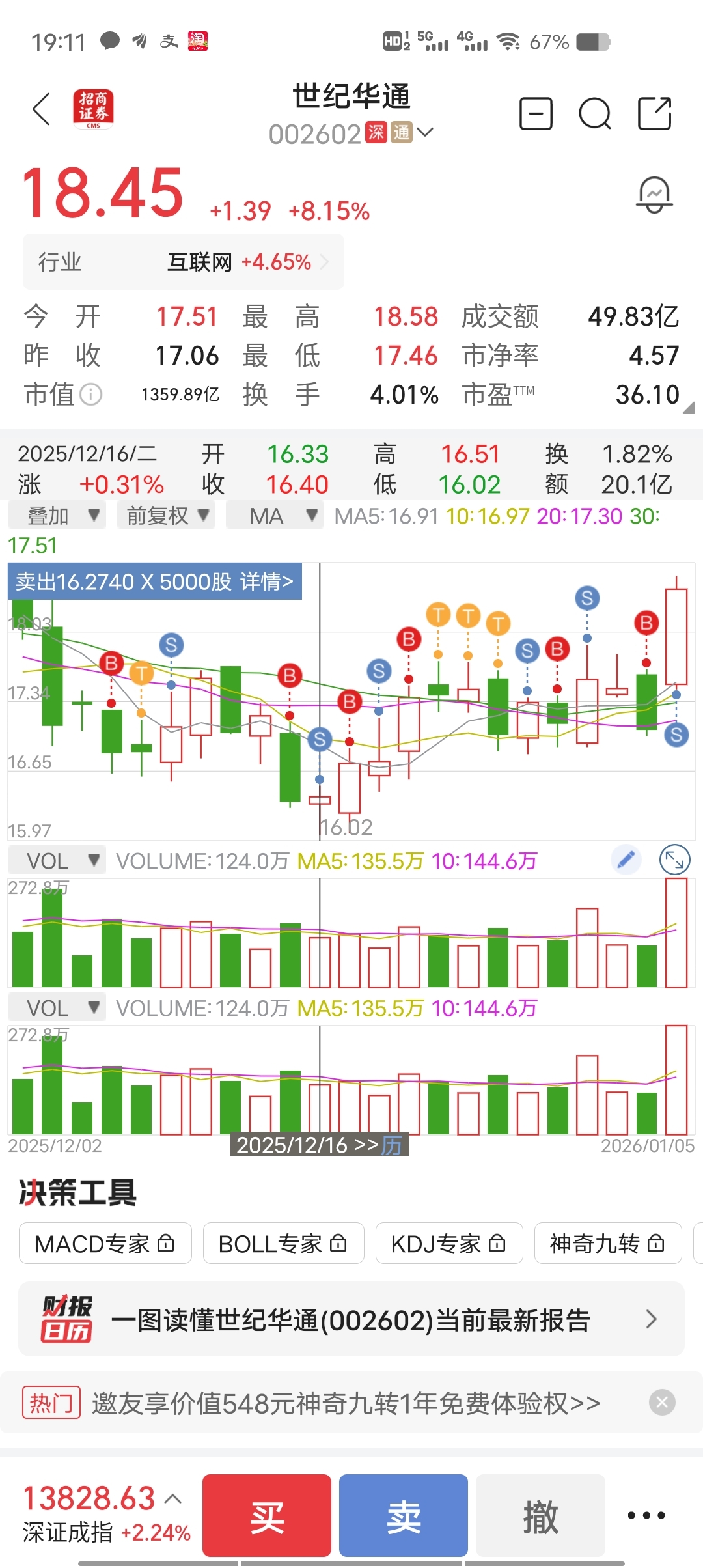 $世纪华通(SZ002602)$ 回头一看,我居然卖了一半在地板上。讨厌这厮,今天彻底走了,每次都卖在地板上!与这股八字不合,删除这个股!