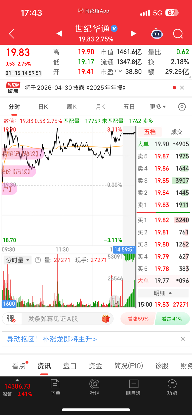 $世纪华通(SZ002602)$ 这么多卖单,明天不是很理想了