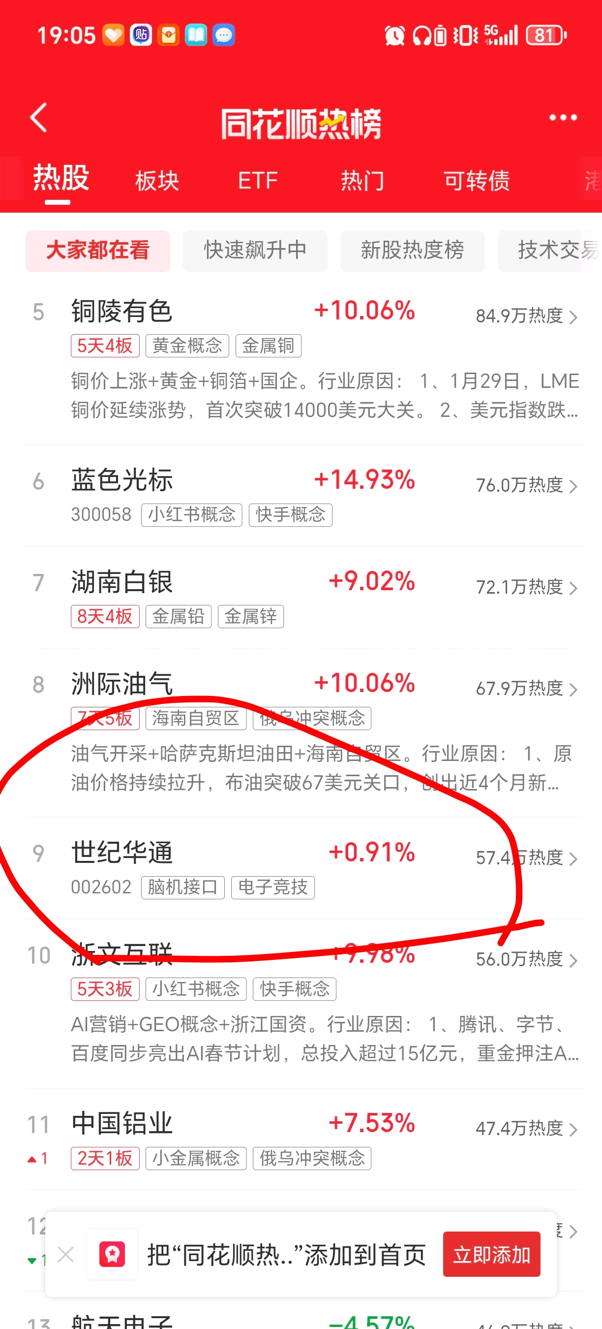 $世纪华通(SZ002602)$ 同花顺热度第九,也是第一次,明天要么涨停要么跌停