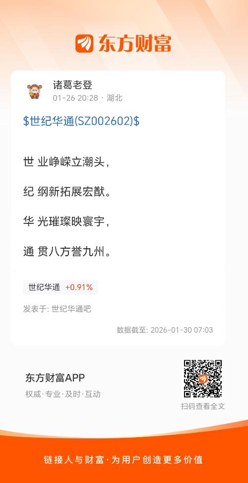 温馨提示: 1.根据《证券法》规定,禁止编造、传播虚假信息或者误导性信息,扰乱证券市场;2.用户在本社区发表的所有资料、言论等仅代表个人观点,与本网站立场无关,不对您构成任何投资建议。用户应基于自己的独立判断,自行决定证券投资并承担相应风险。《东方财富社区管理规定》