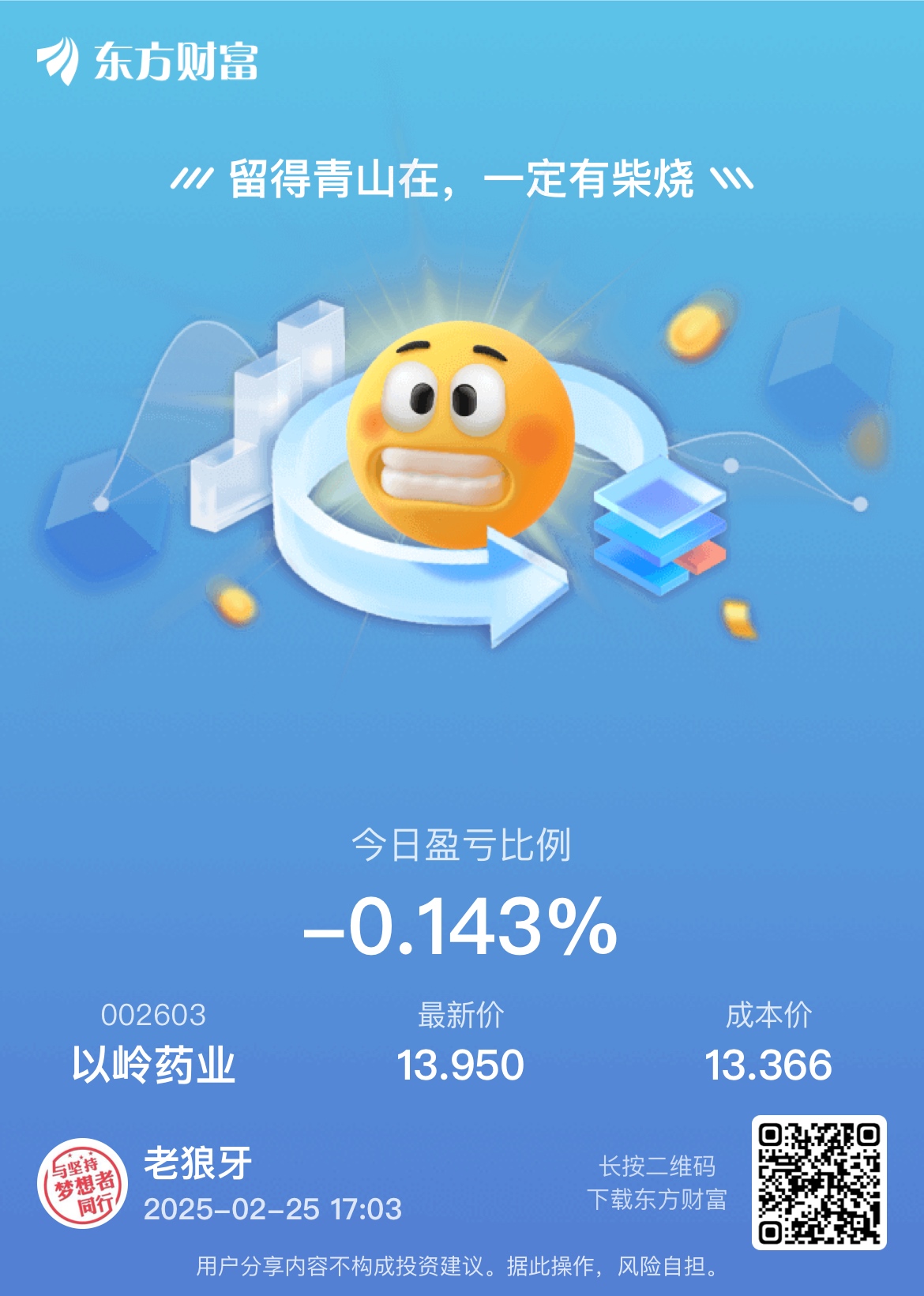 $以岭药业(SZ002603)$ 我又买回来了,14元以下就买回来