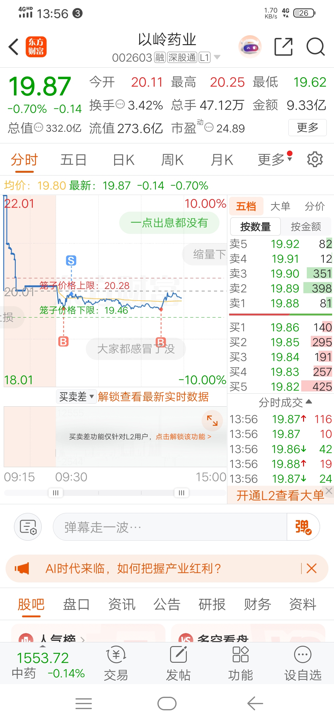 $以岭药业(SZ002603)$ 明天赚包烟钱就跑