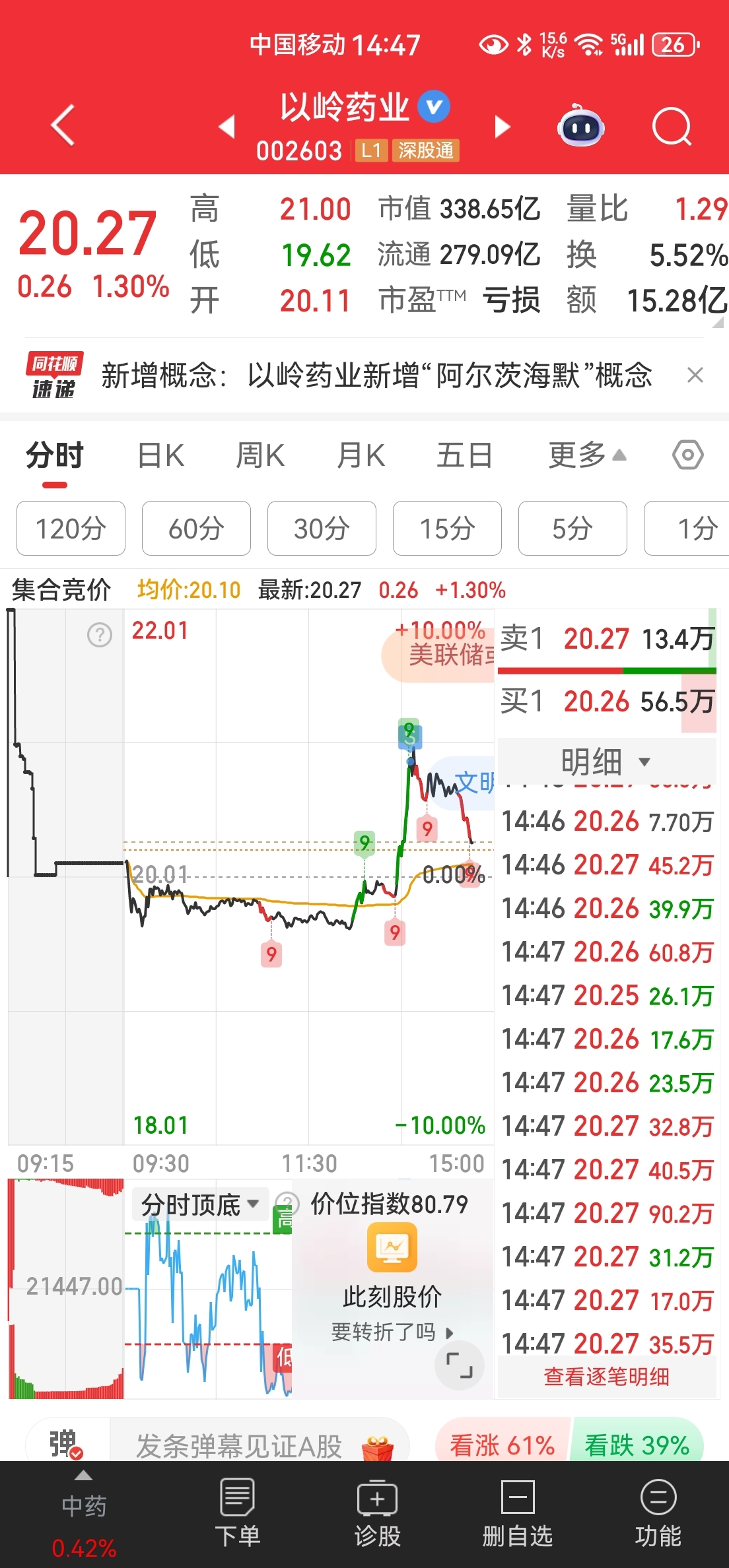 $以岭药业(SZ002603)$ 先跑路了,明天水下有机会再进。