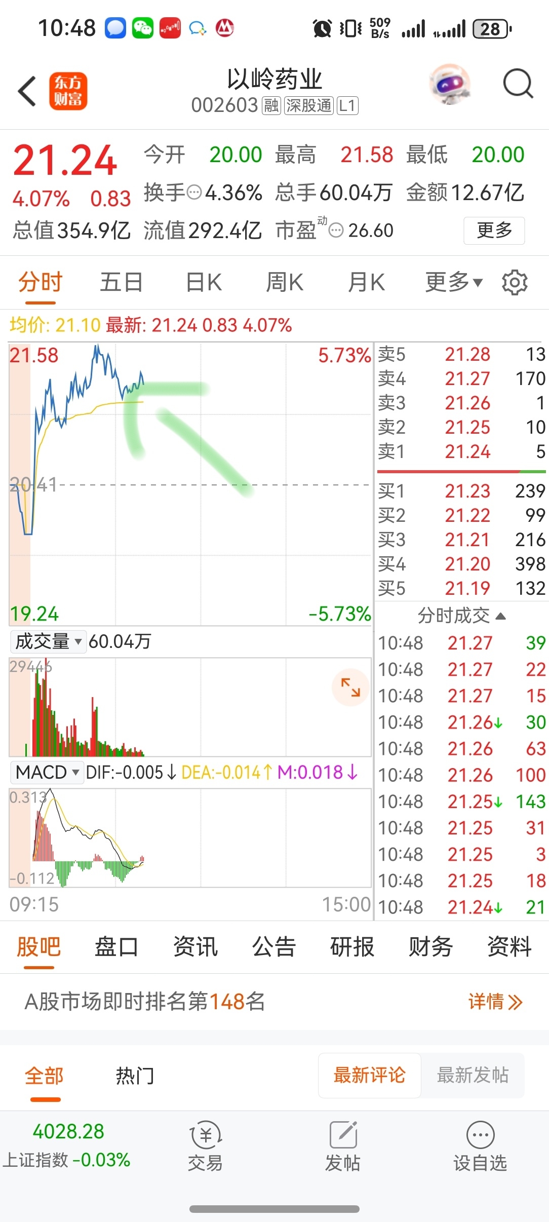 $以岭药业(SZ002603)$ 这个分时支撑太有意思了,是清洗不坚定获利筹码呢还是干啥,俺全仓满上,看朱莉干啥可好。