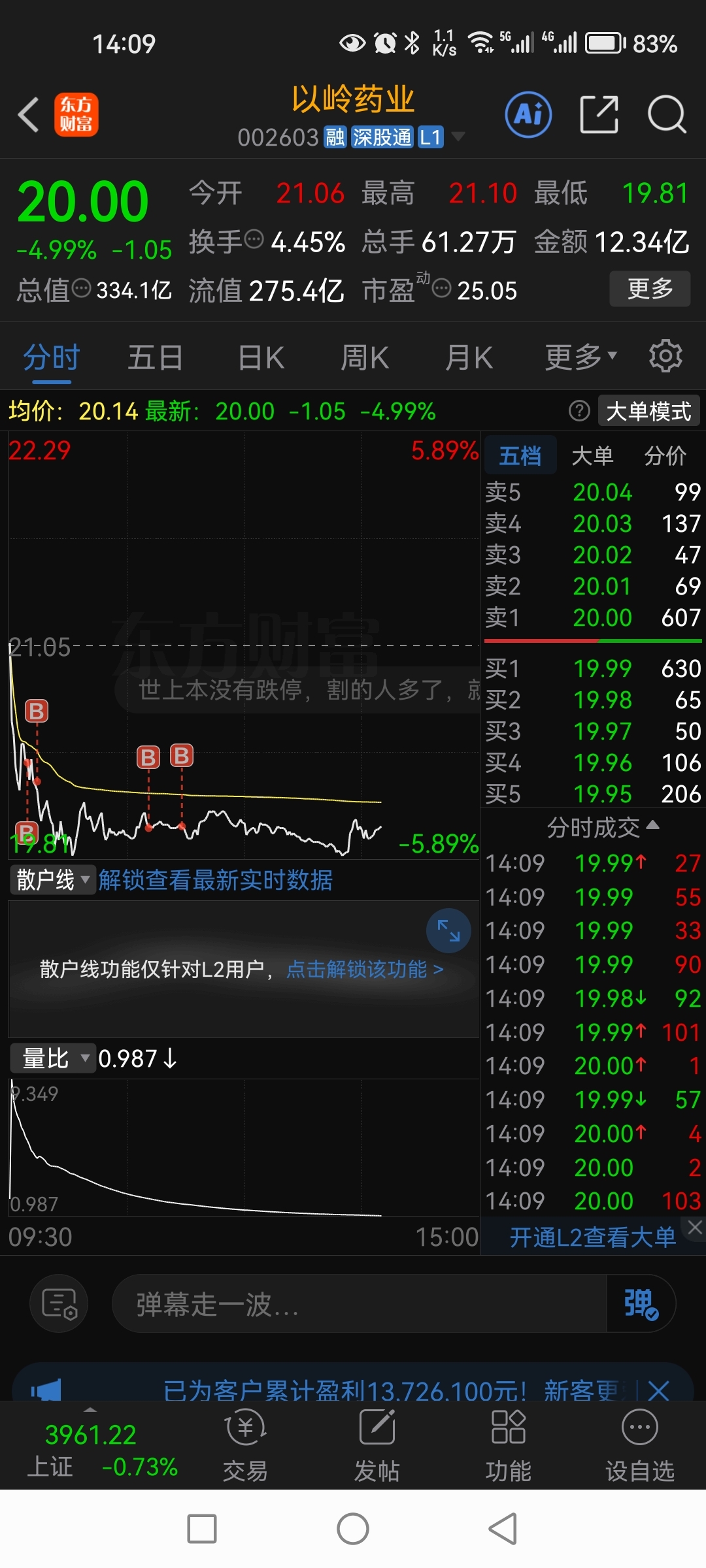 $以岭药业(SZ002603)$ 你们割吧!我来接