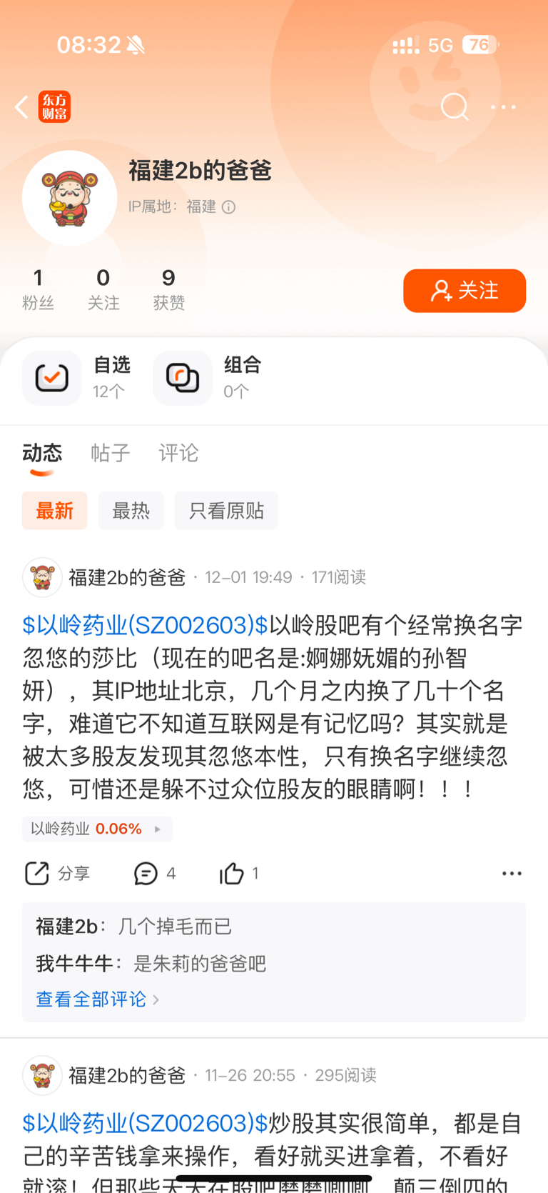 $以岭药业(SZ002603)$ 这个2b小心专业喷子福建人