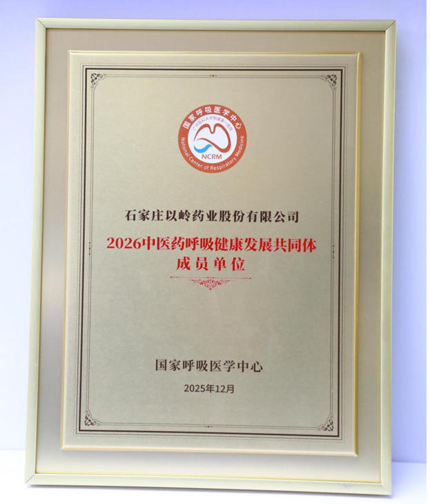 以岭药业获授“中医药呼吸健康发展共同体”成员单位