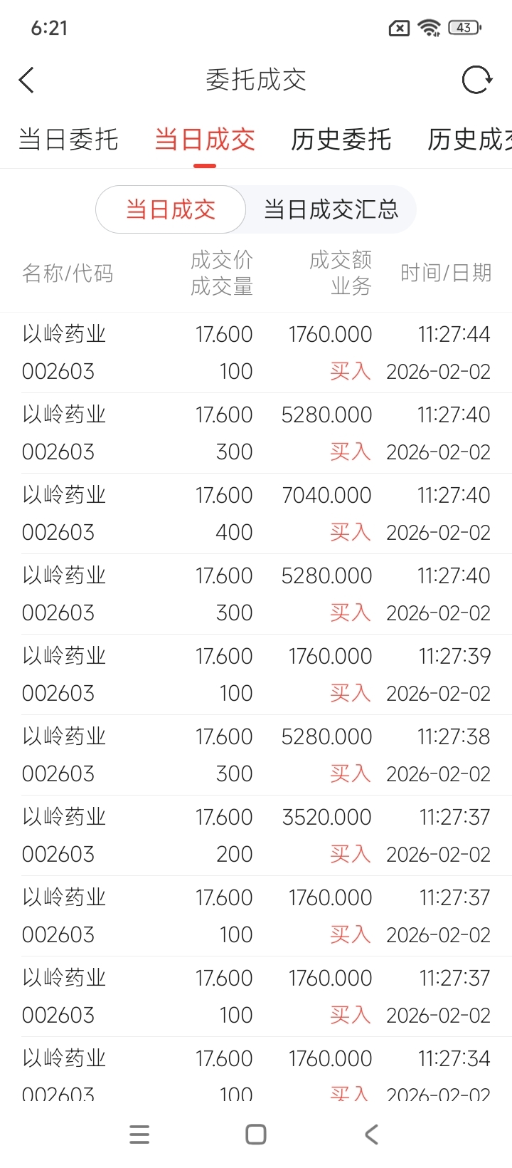 $以岭药业(SZ002603)$ 试探性买入2000股,感觉问题不大,都是散户卖给我的。