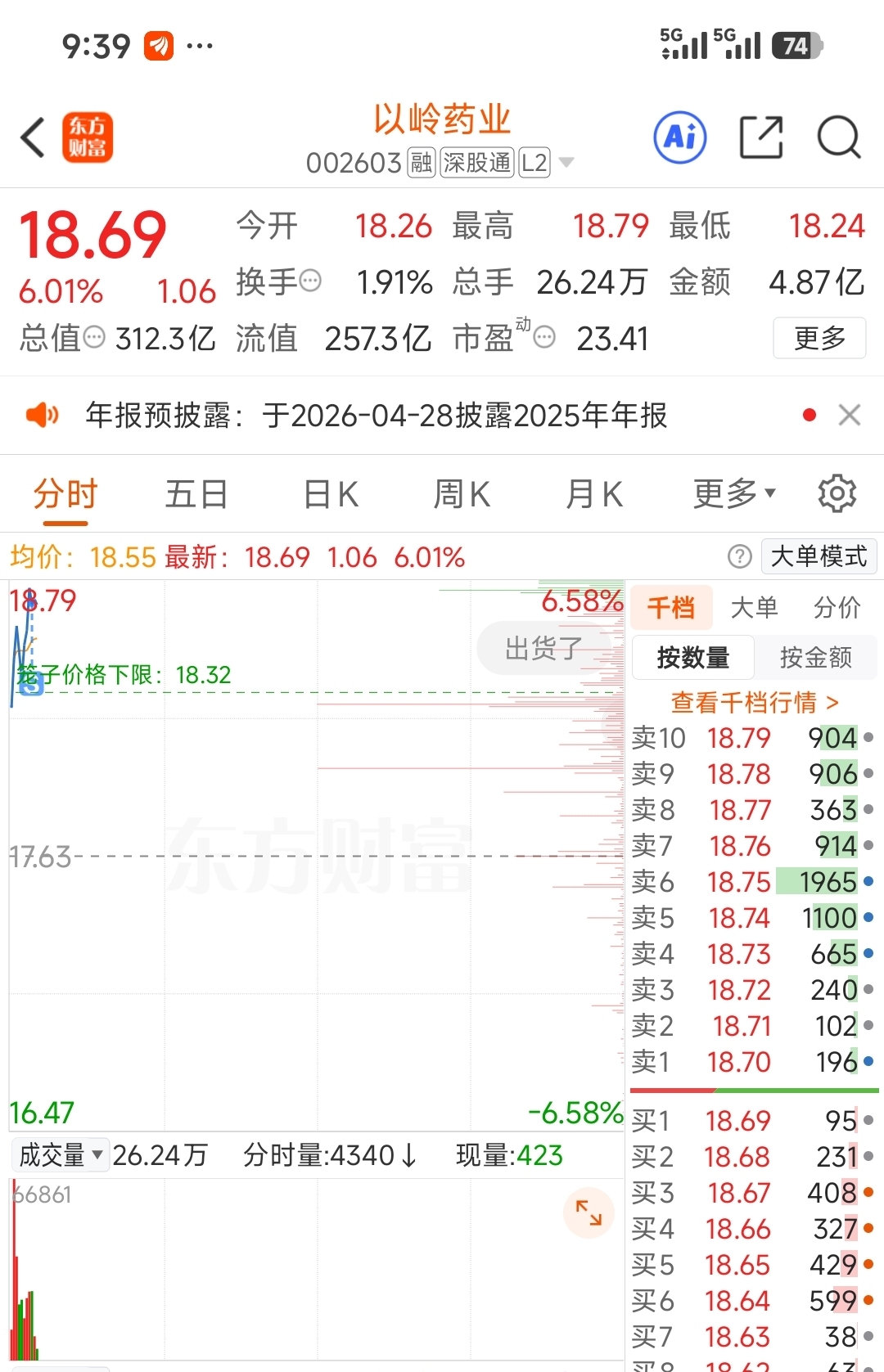 $以岭药业(SZ002603)$ 我卖了,有人接住了么?
